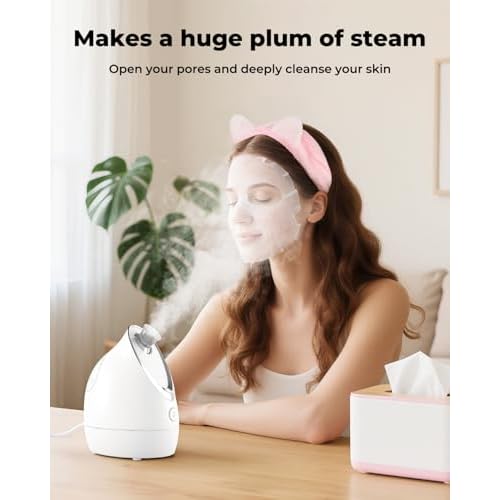 Kingsmile Facial Steamer for Face, 3 in 1 Face Steamer for Facial Deep Cleaning, Compact Nano Steamer - Aromatherapy, Adjustable Nozzle Warm Powerful Steam for Home SPA, Face Humidifier- SPA Headband