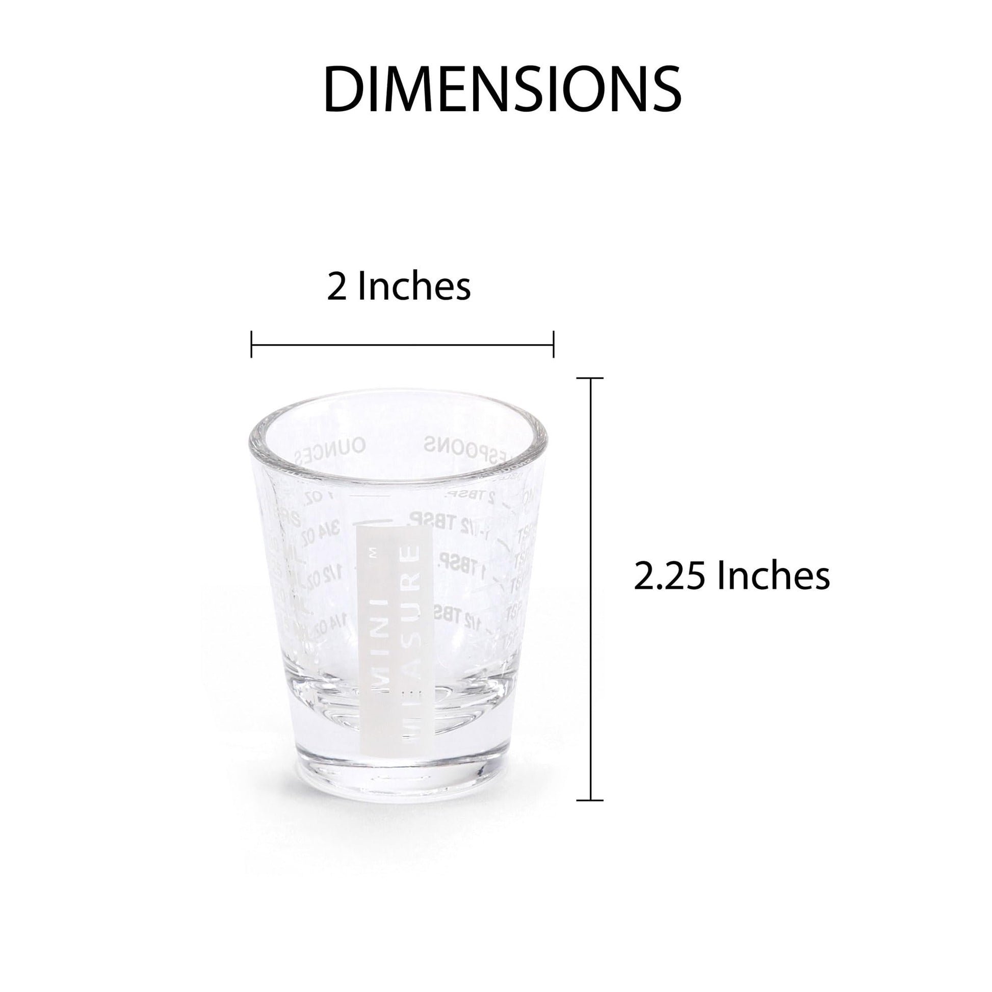 Details: Mini Measure precisely measures dry and liquid ingredients for balanced recipes and delicious beverages. Permanent markings on the glass and will never fade or wear off. It includes 20-incremental measurements up to 6-teaspoons, 2-tablespoons, 1-ounce, and 30-milliliters. Measuring and transporting smaller amounts without them spilling is easier than with measuring spoons. And, its weighted base helps reduce tipping for even less mess. Whether whipping up breakfast, making a cake recipe, mixing up a pitcher of margaritas or other cocktail recipes, the heavyweight glass allows a clear view of the contents for more control and accuracy. It offers endless uses in the kitchen and around the house. It’s compact enough to store in a drawer with kitchen gadgets or bar accessories. It’s the perfect bar jigger for the barista and mixologist. Keep a spare in the garage for measuring non-food liquids. Made in the USA from heavyweight glass, Mini Measure is sturdy, durable, and dishwasher safe for easy cleanup.