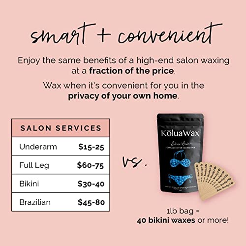 KoluaWax Hard Wax Beads for Hair Removal ? Coarse Hair Formula ? Face, Brazilian, Underarms, Back Chest, Bikini Waxing ? Sea Salt & Surf, 1lb Refill for Wax Warmers & 10 Large Applicator Sticks