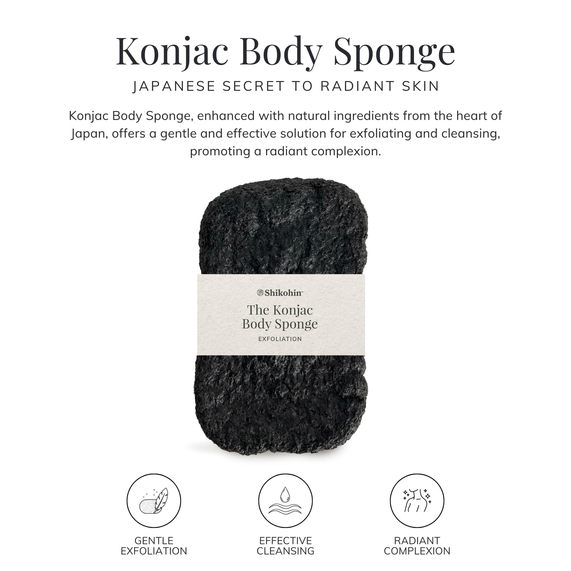 - 100% Natural Konjac Root Sponge: Crafted from the konjac plant native to Japan, this body sponge offers a soft, biodegradable option for daily exfoliation and skincare.