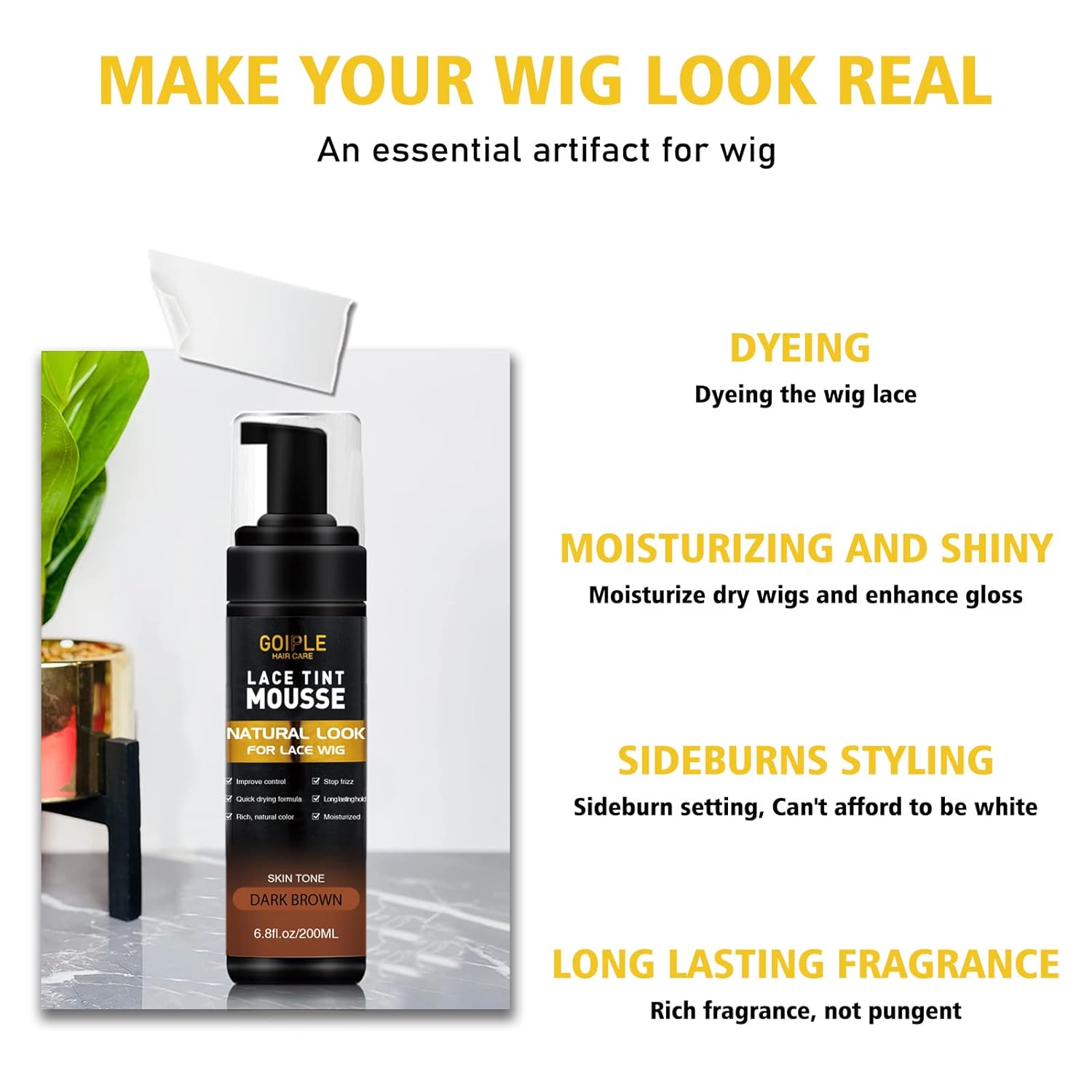 - 【Premium Lace Tint Mousse】Our lace tint mousse for wigs has created a premium alcohol-free formula for rapid drying. The lace tint mousse is dense and easy to apply. Lace wigs, synthetic wigs, woven wigs and other types of lace wigs suitable for women.