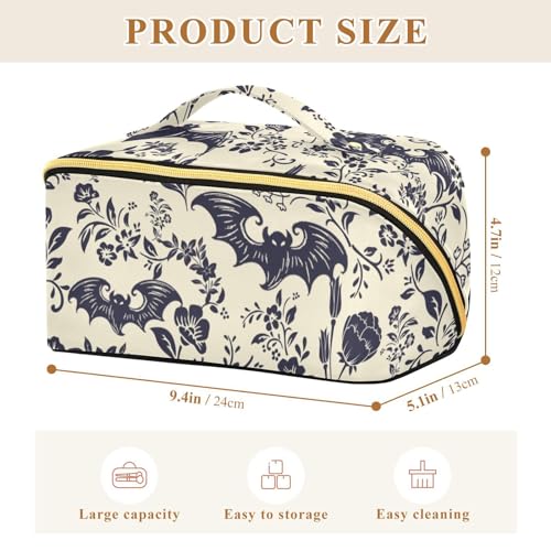 Large Capacity Cosmetic Bag Travel Makeup Bags Goth Bats Wide Open Portable Toiletry Bag Make up Organizer Pouch with Handle