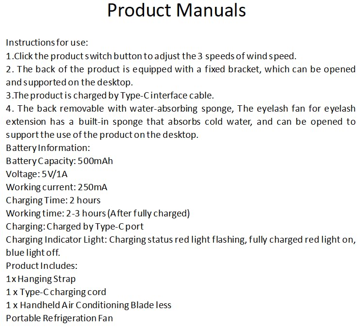 - 【Warm Tips】Please fully charge the eyelash fan before use after receiving it!