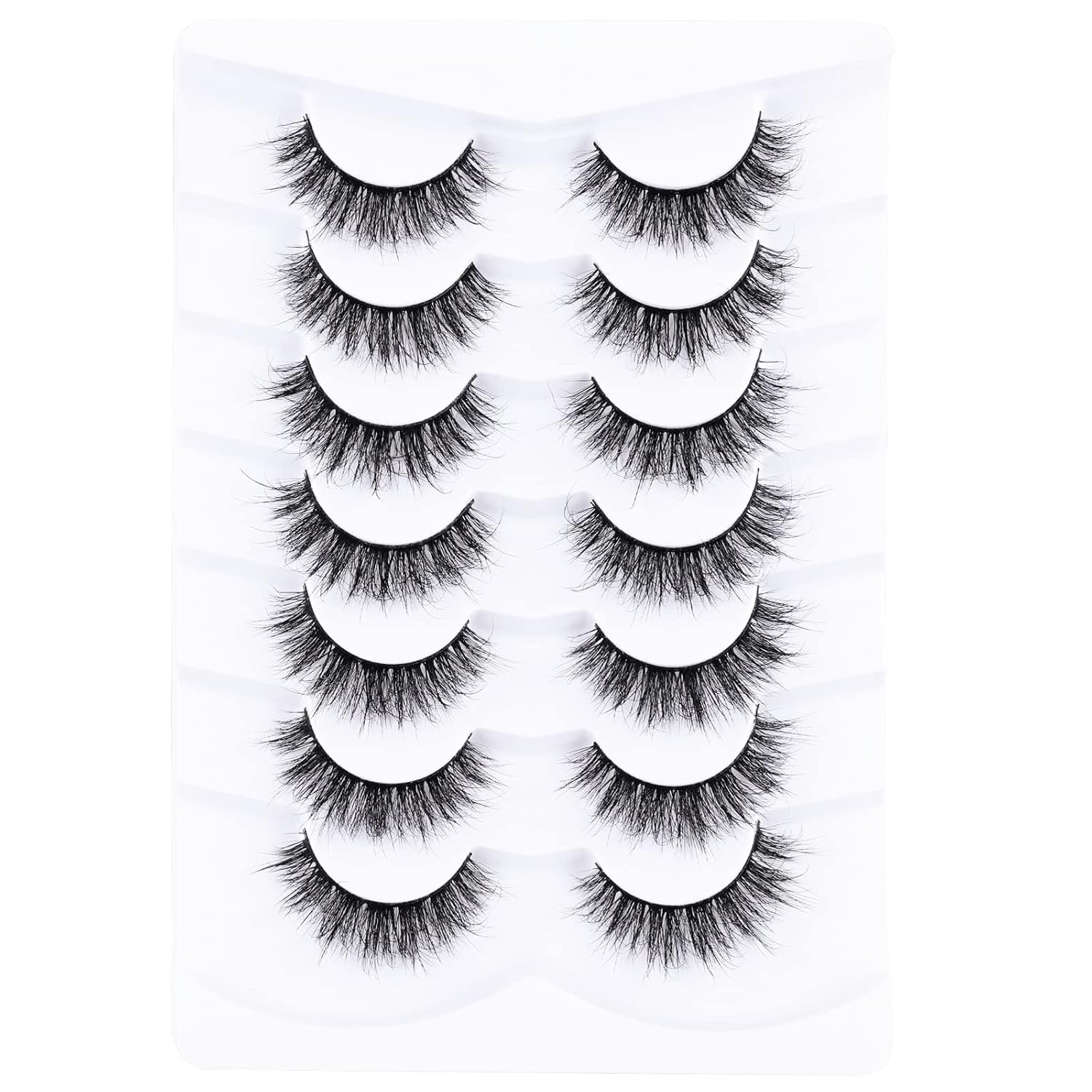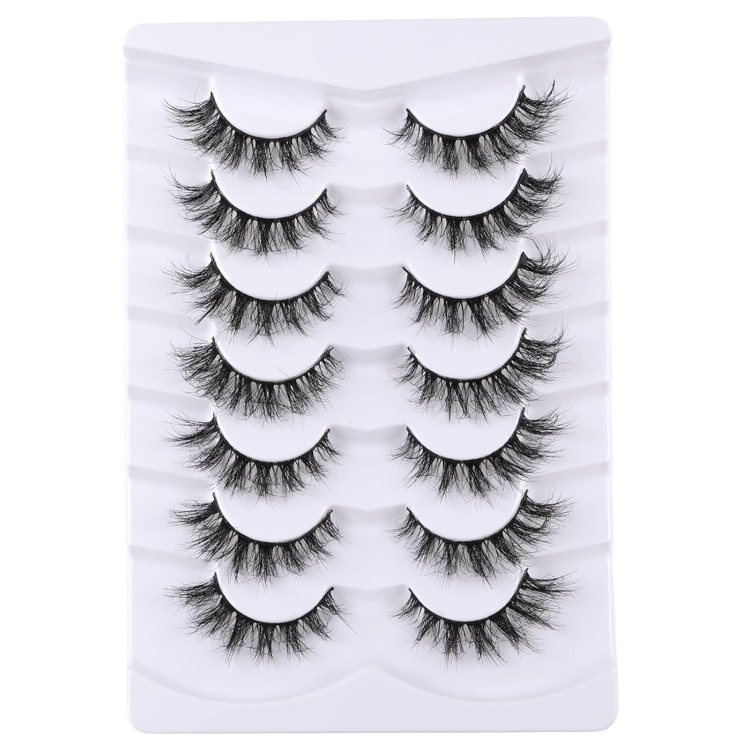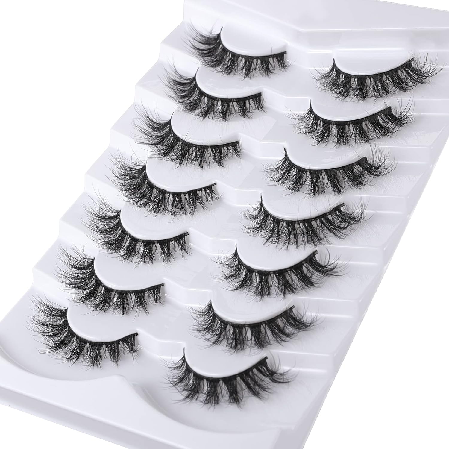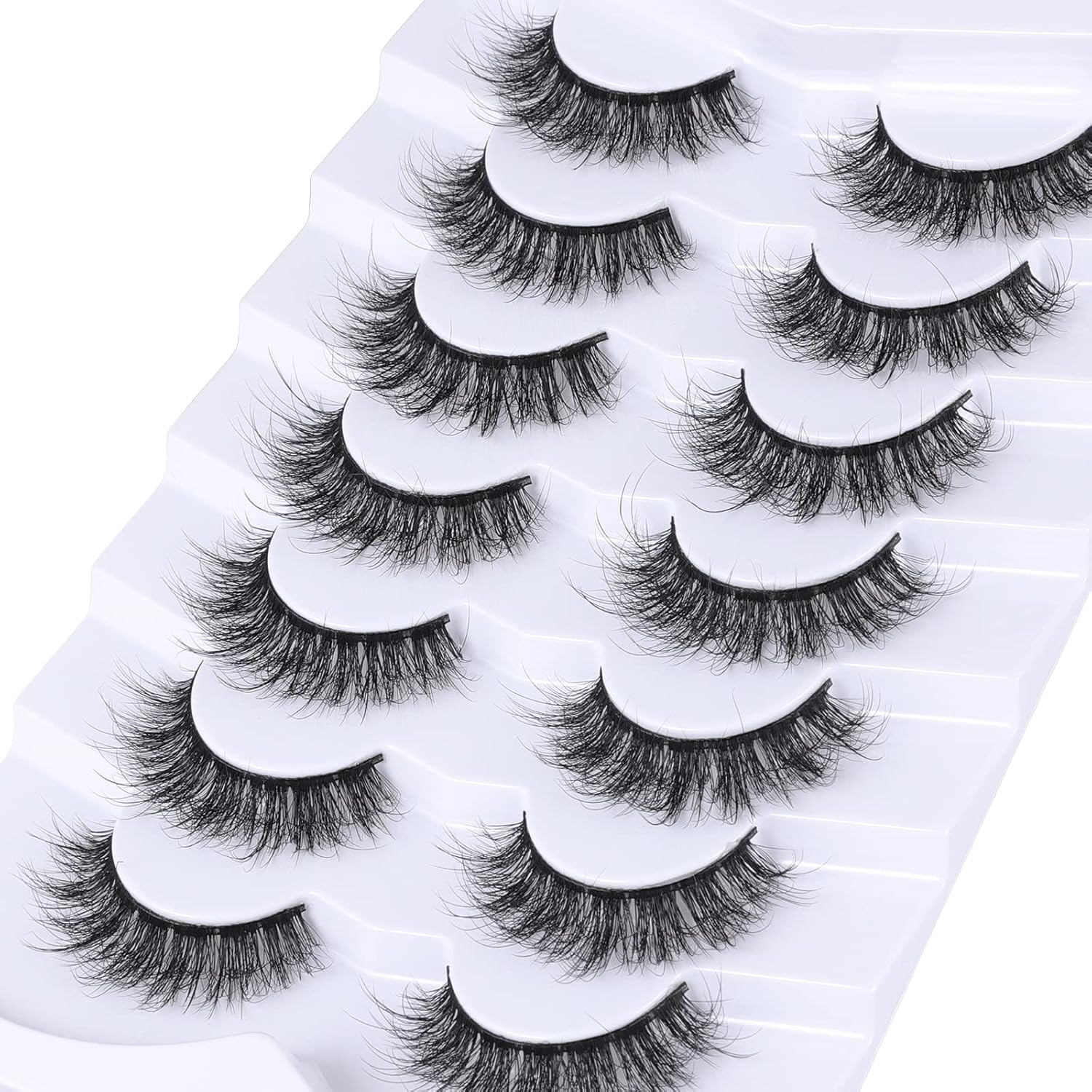 Lashes Eyelashes 8D Fluffy False Eyelashes Wispy Faux Mink Lashes Light Weight Fake Eyelashes Cat Eye Lashes 7 Pairs Pack, Black