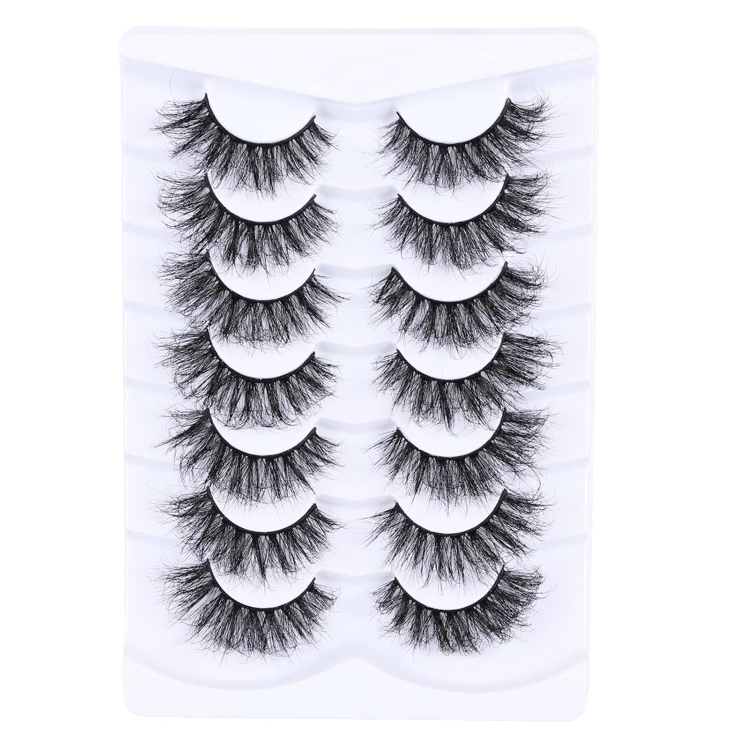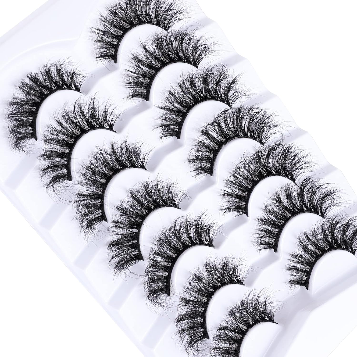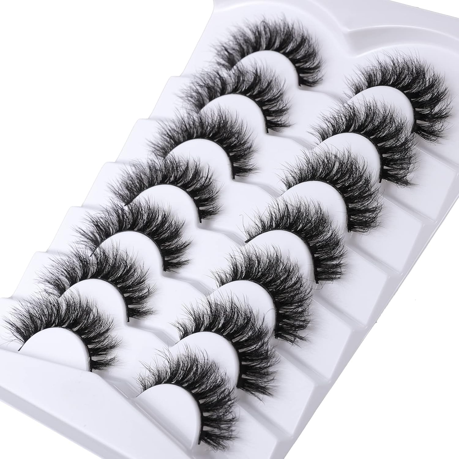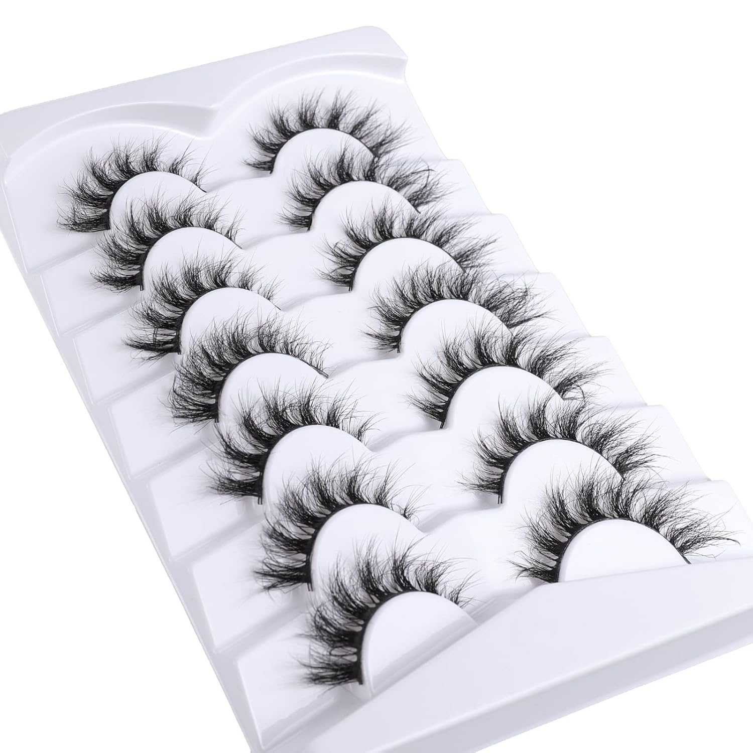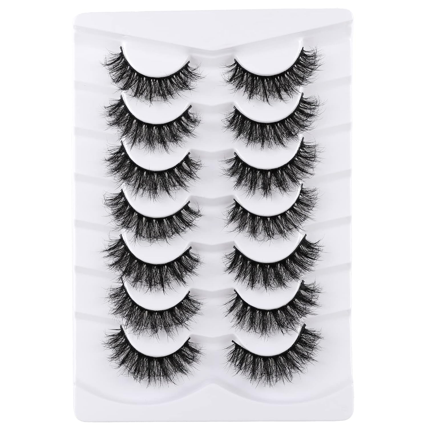 Lashes Eyelashes 8D Fluffy False Eyelashes Wispy Faux Mink Lashes Light Weight Fake Eyelashes Cat Eye Lashes 7 Pairs Pack, Black