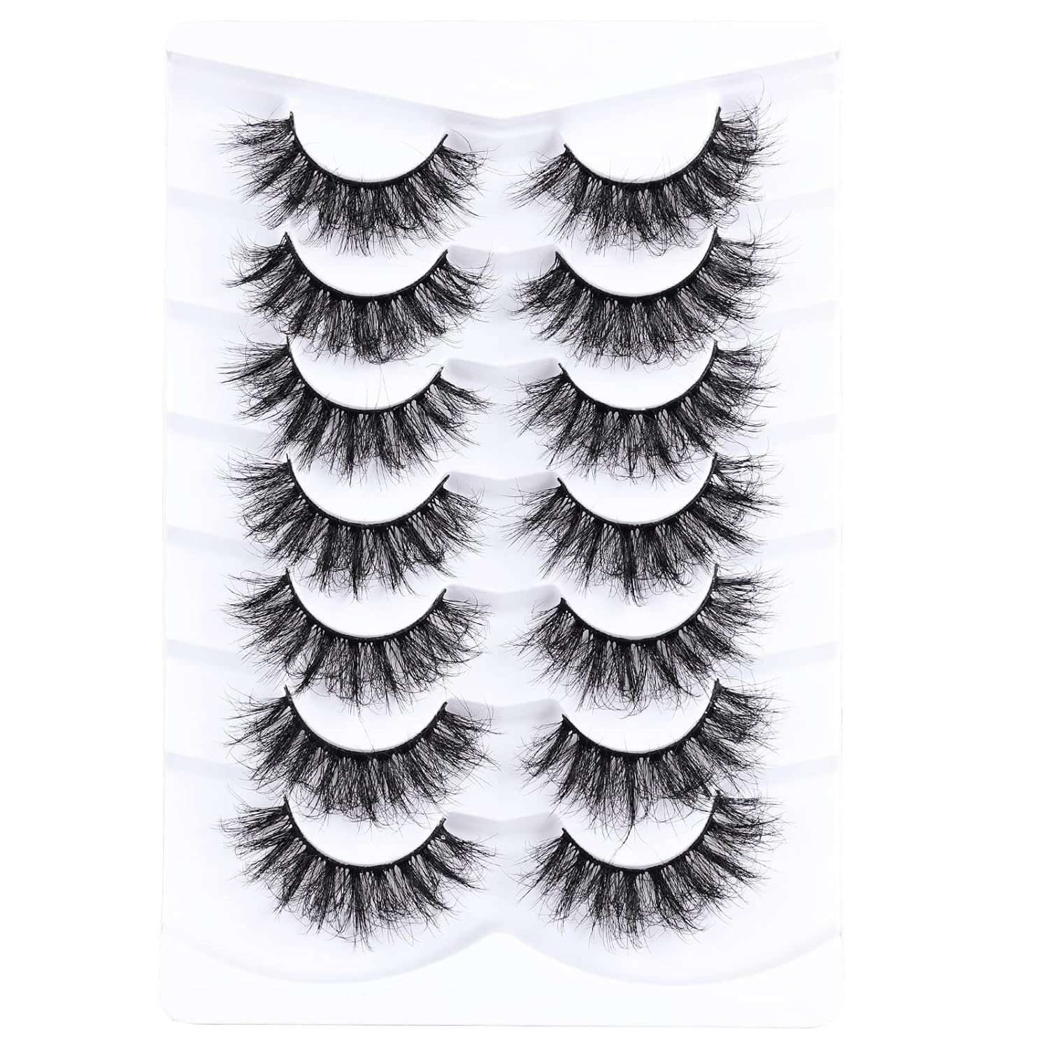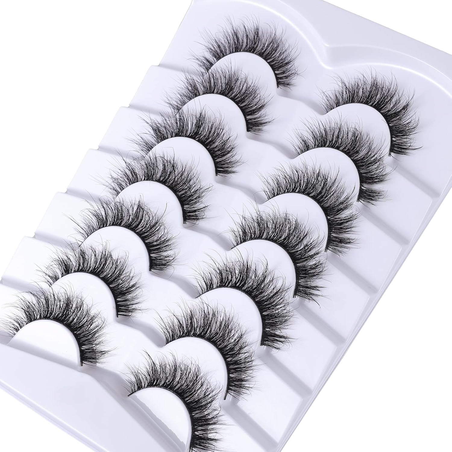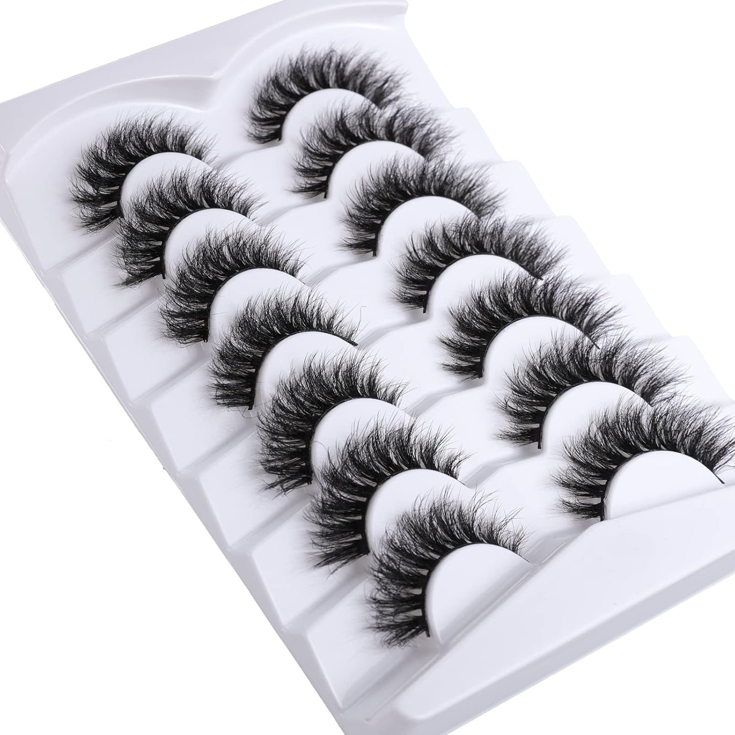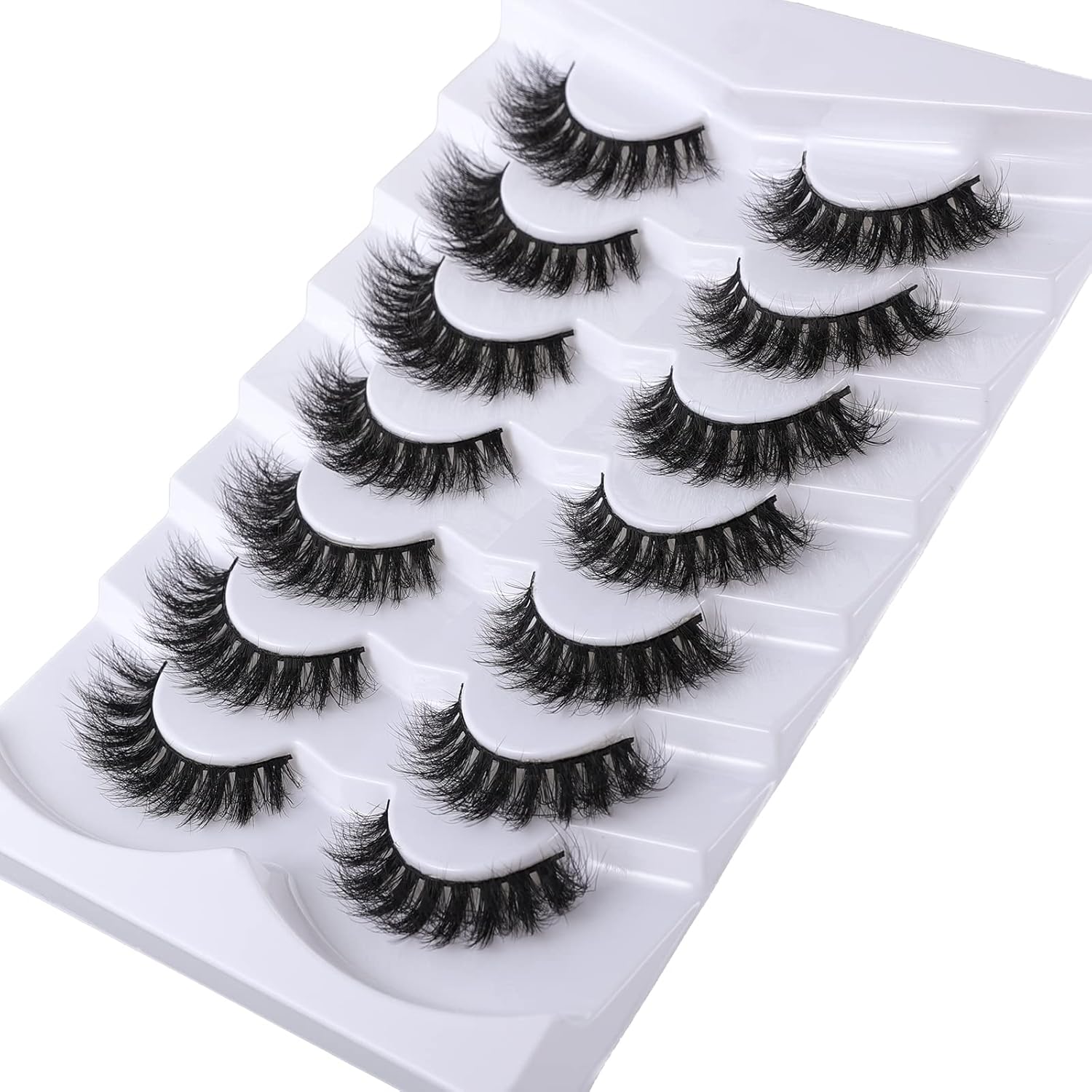Lashes Eyelashes 8D Fluffy False Eyelashes Wispy Faux Mink Lashes Light Weight Fake Eyelashes Cat Eye Lashes 7 Pairs Pack, Black