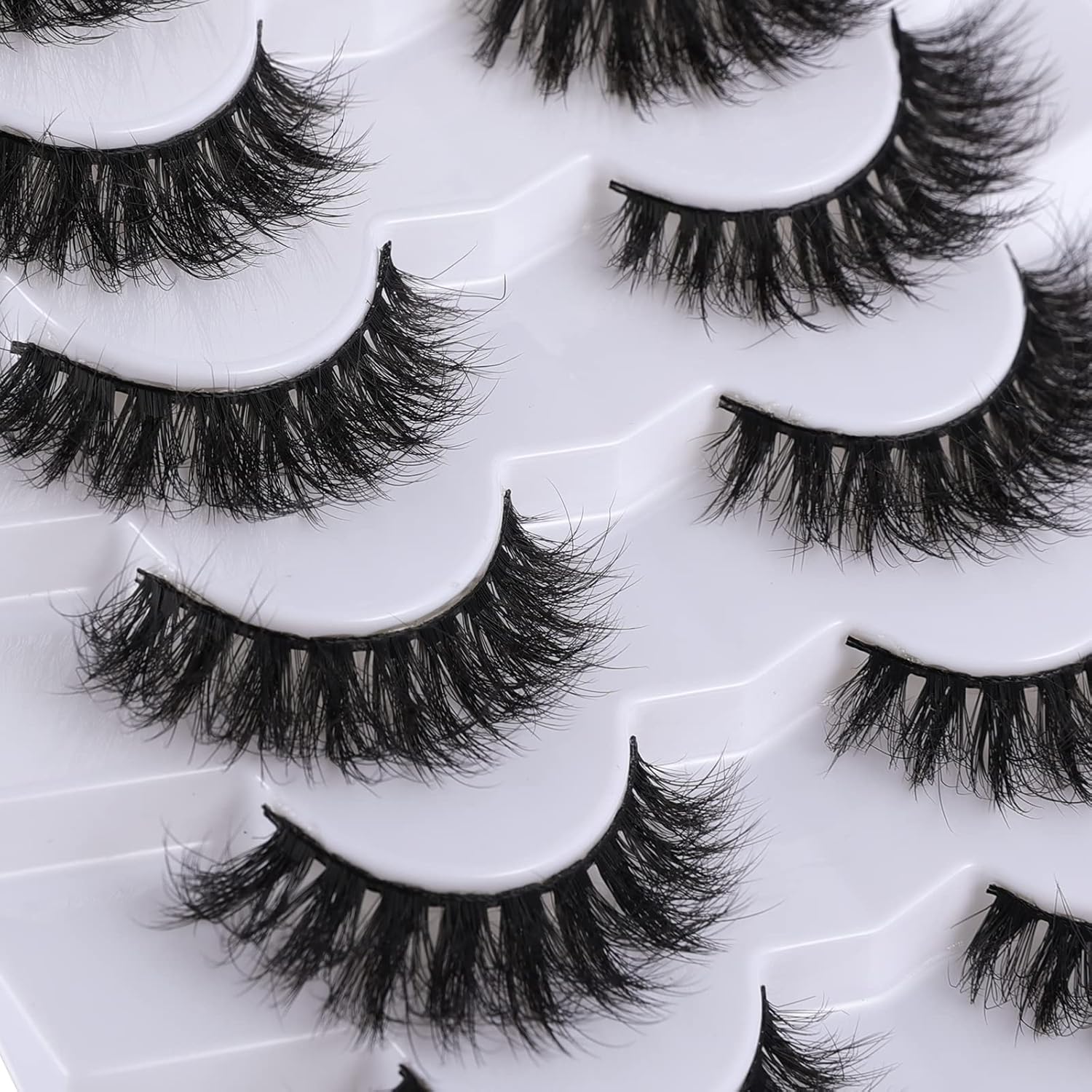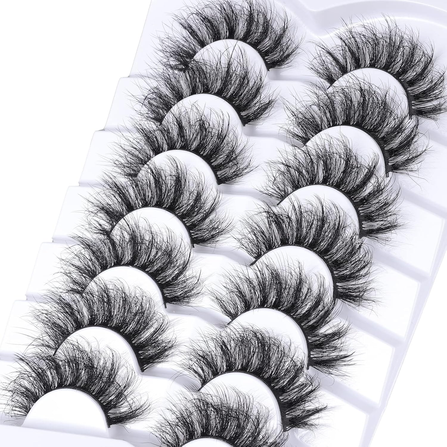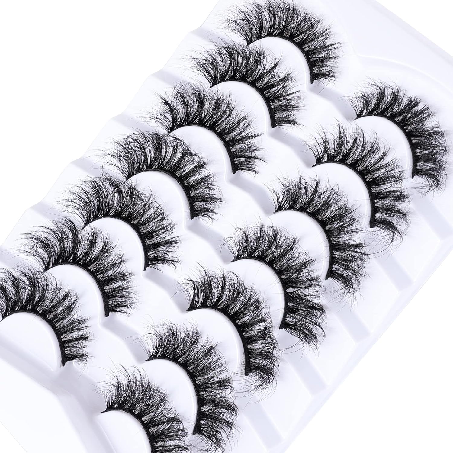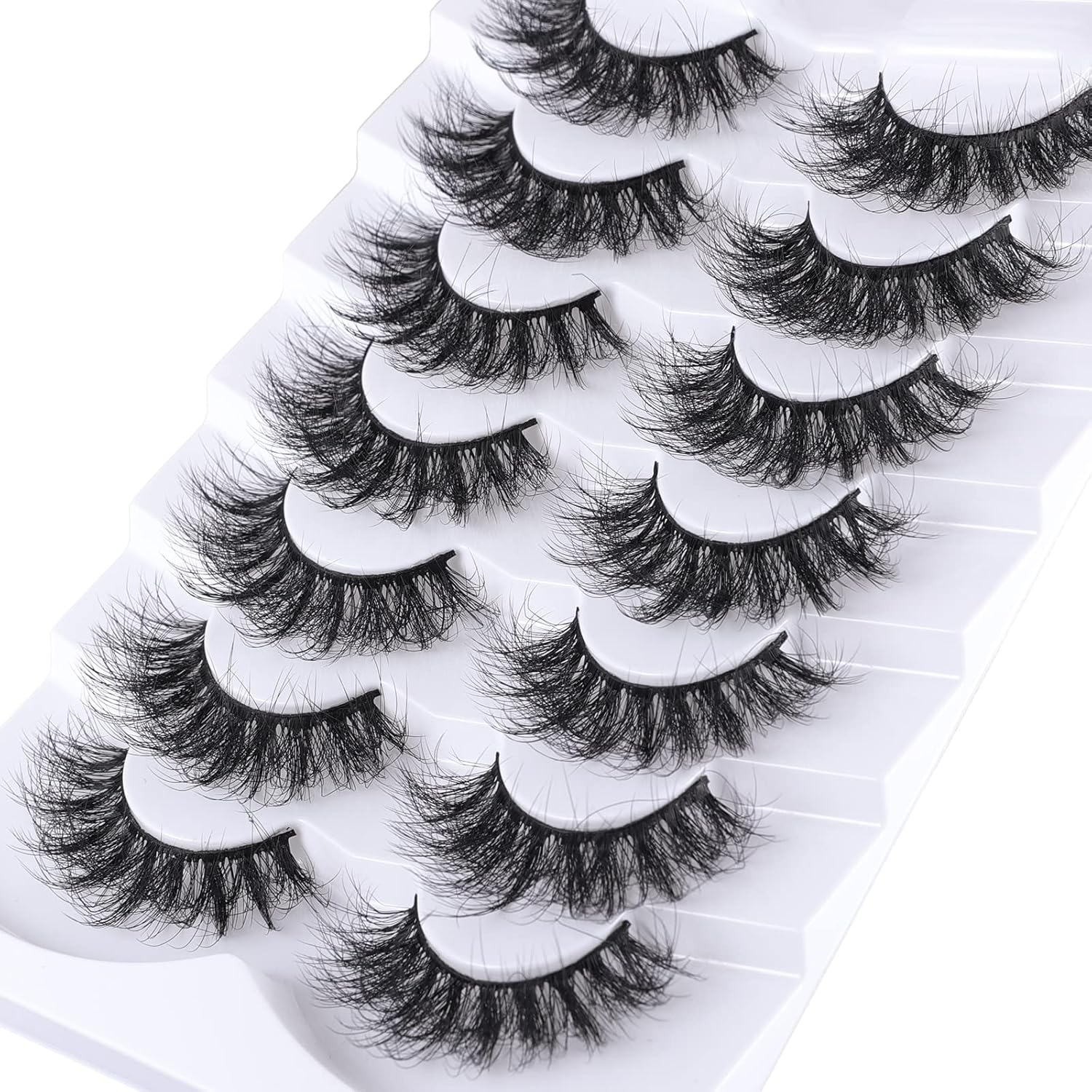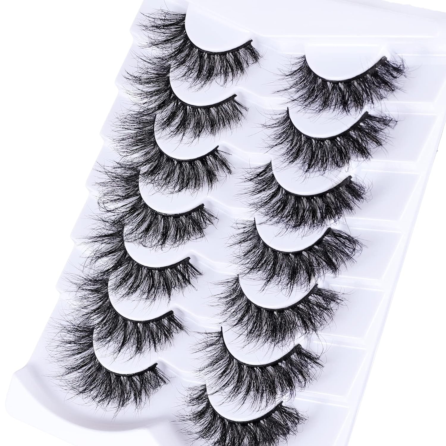 Lashes Eyelashes 8D Fluffy False Eyelashes Wispy Faux Mink Lashes Light Weight Fake Eyelashes Cat Eye Lashes 7 Pairs Pack, Black