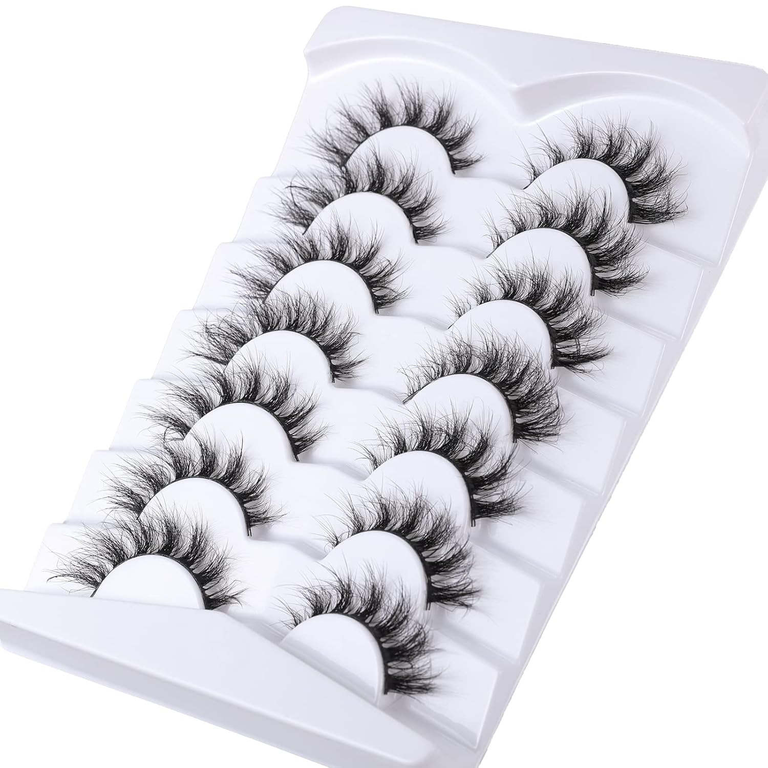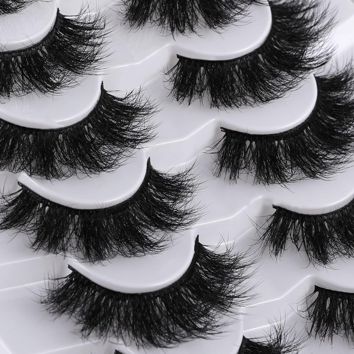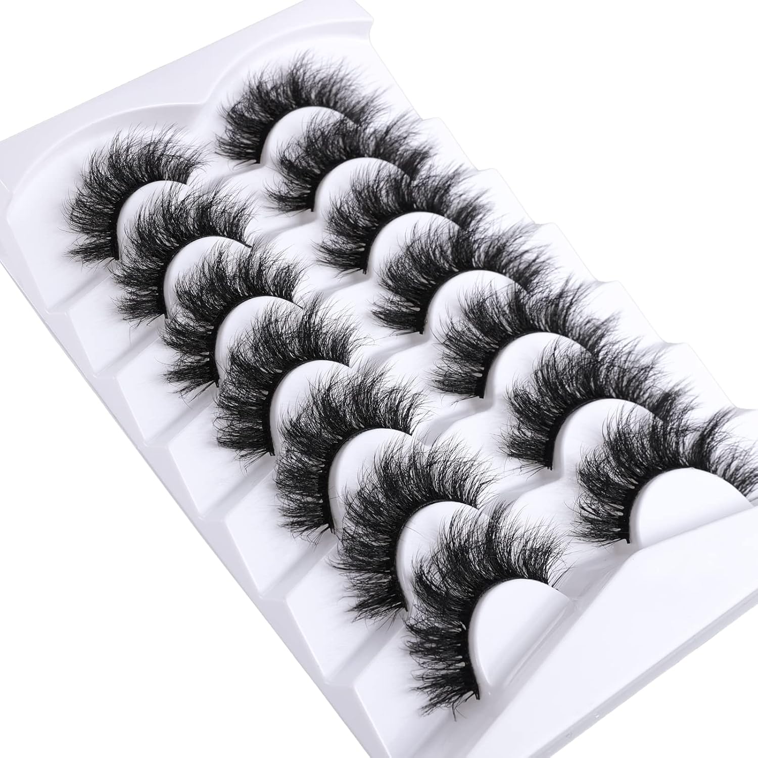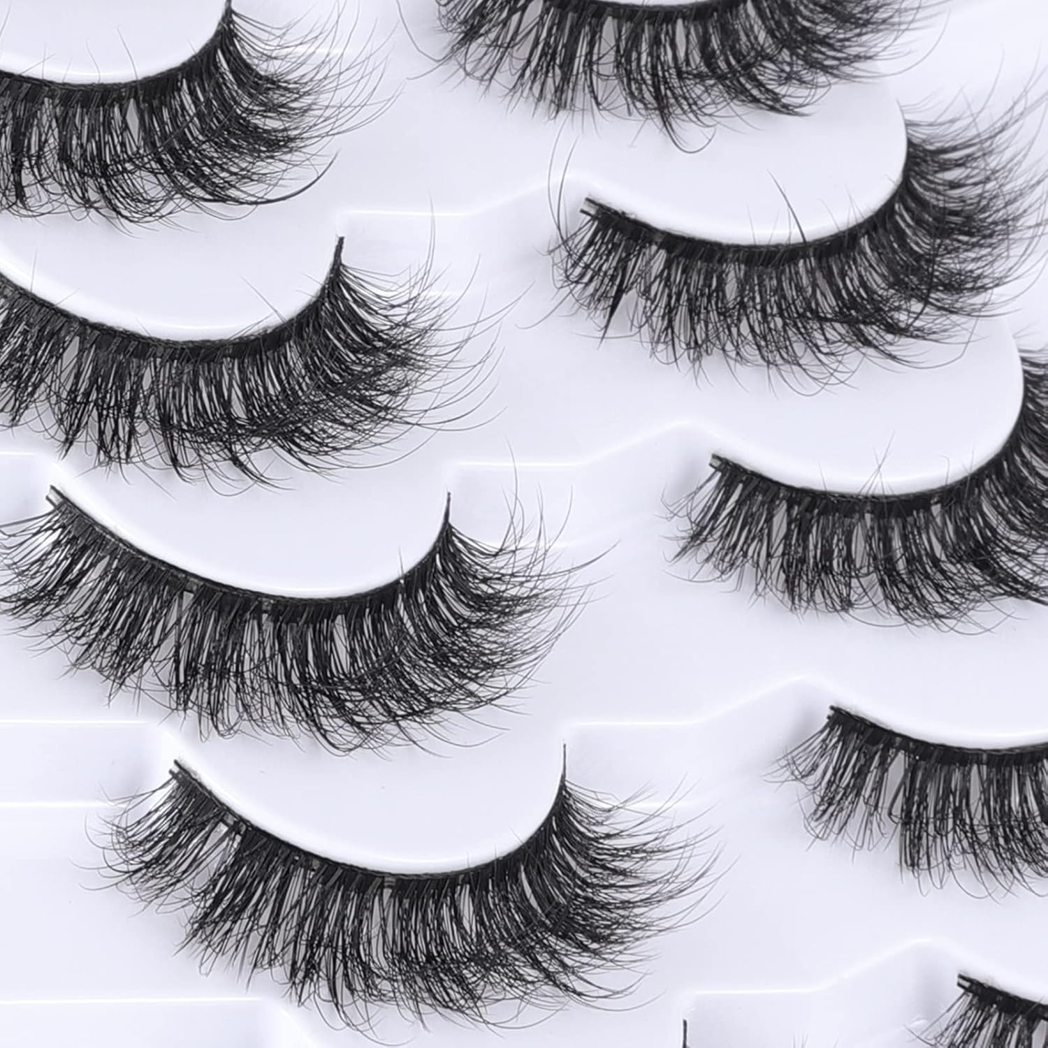 Lashes Eyelashes 8D Fluffy False Eyelashes Wispy Faux Mink Lashes Light Weight Fake Eyelashes Cat Eye Lashes 7 Pairs Pack, Black