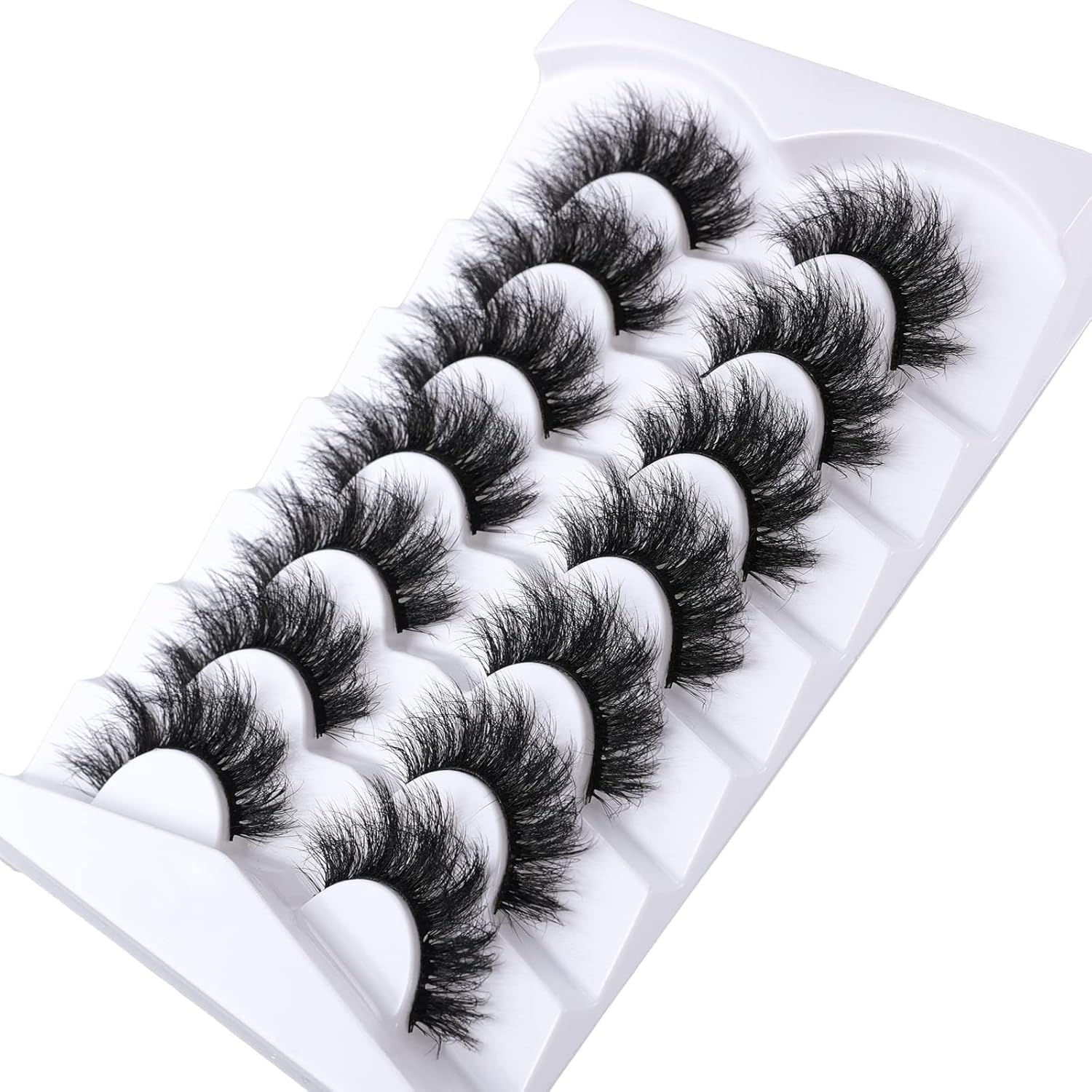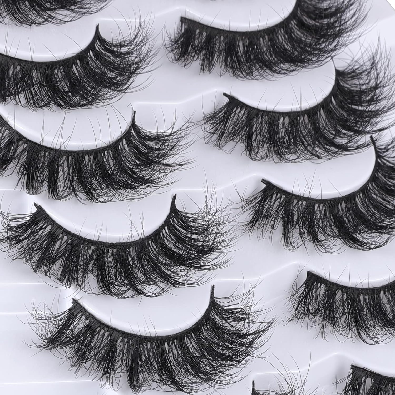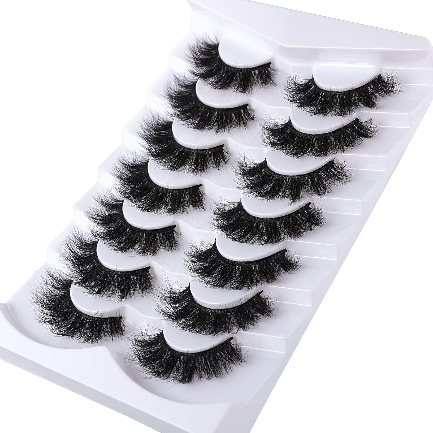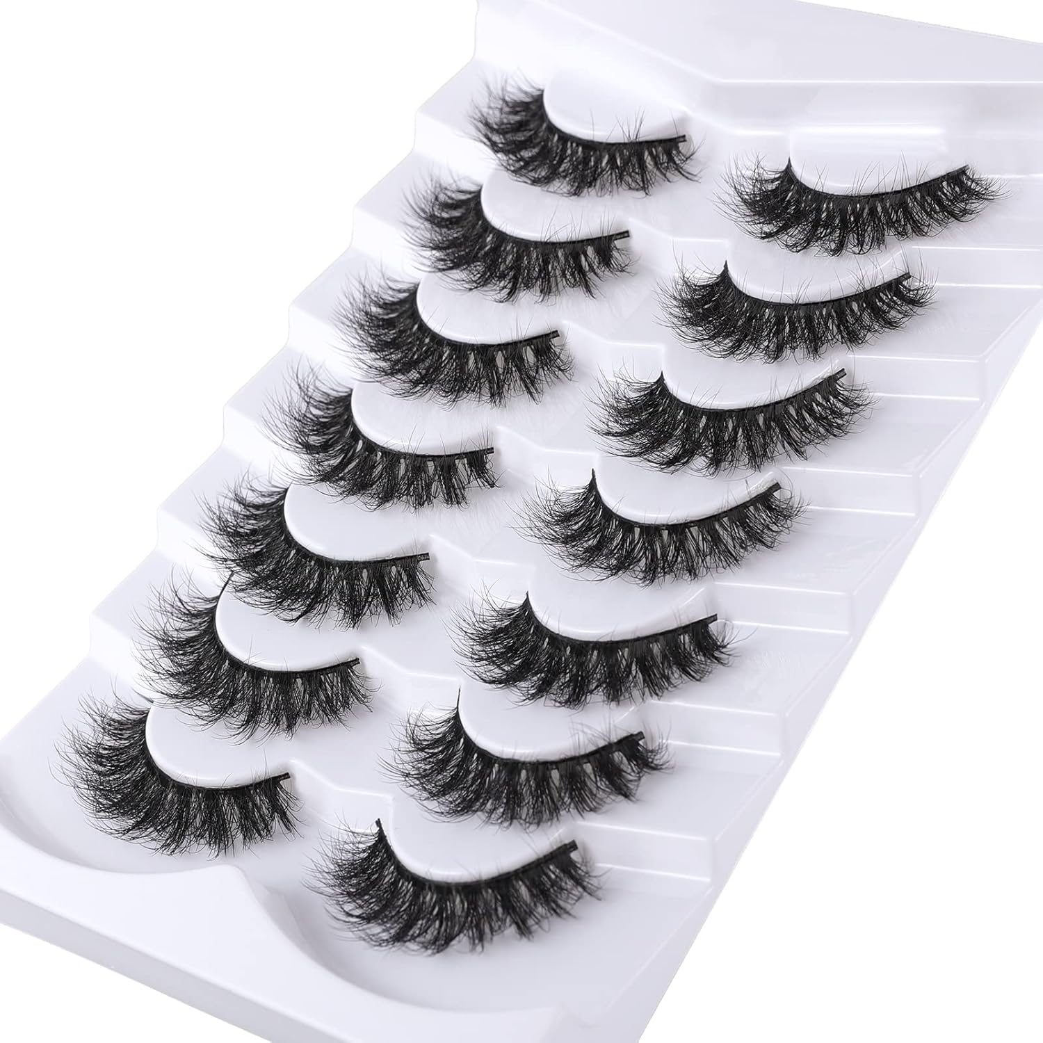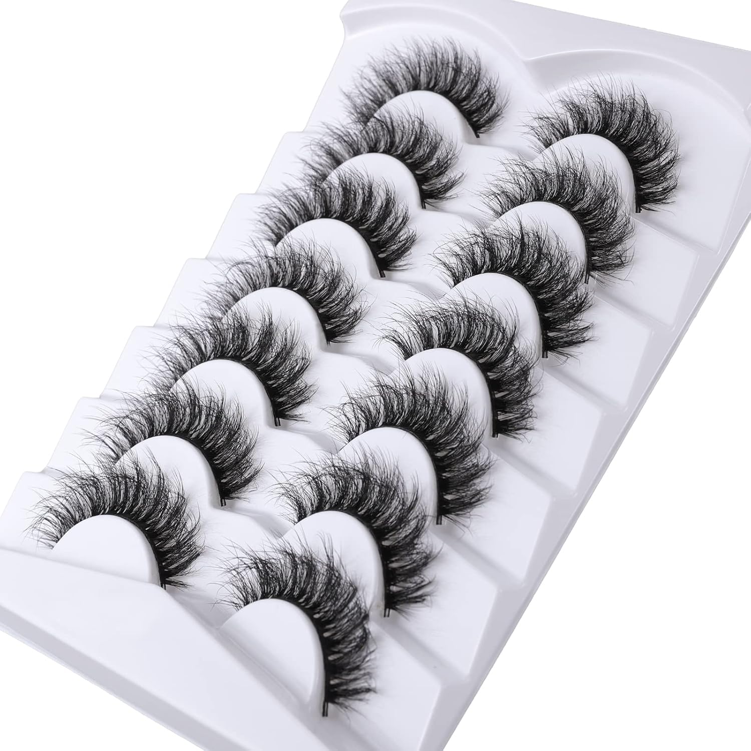 Lashes Eyelashes 8D Fluffy False Eyelashes Wispy Faux Mink Lashes Light Weight Fake Eyelashes Cat Eye Lashes 7 Pairs Pack, Black