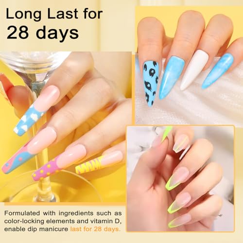 - Long Lasting: Enjoy chip-resistant nails that endure for more than 28 days with daily use. No quick breakage or peeling. This nail dip powder kit is air drying, bringing you a convenient dips nail art experience.