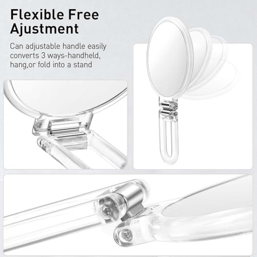 - MUTI-USE DESIGN: Flexible foldaway handle which can rotate multiple angles(with a moderate damping feel), can be used as a hand mirror, tabletop mirror, and hanging mirror.