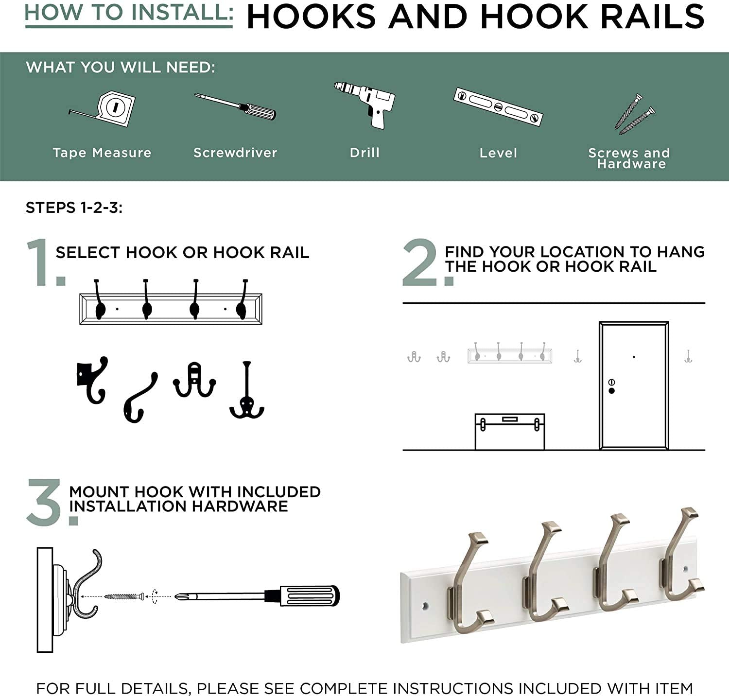 - Includes mounting hardware and installation instructions