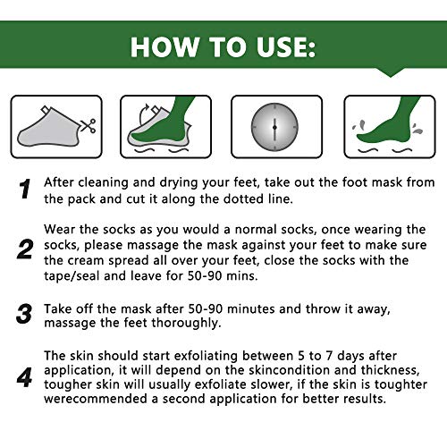 - EASY EXFOLIATING: All you have to do is slip your feet into the foot mask socks, leaving on for an hour, and washing away. After application, dead skin will start to peel within 6-11 days. You can get baby soft feet in just one week!