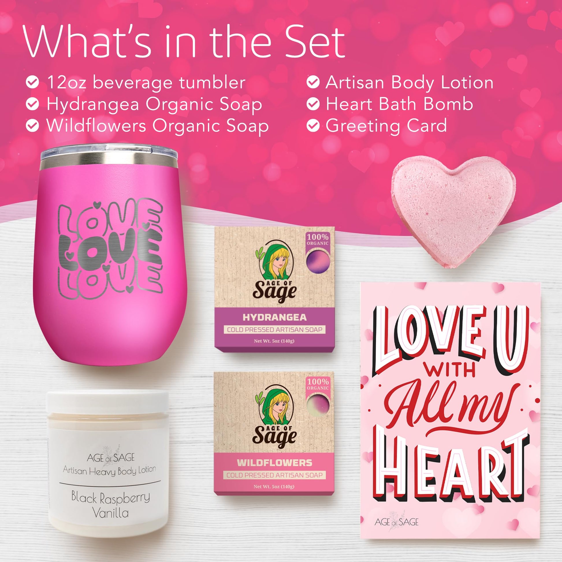 Love Spa Gift Basket for Women - Self Care Basket, Relaxation, Pampering Gift for Girlfriend, Wife, Mom, Sister, Friends - Birthday Bundles, Mothers Day, Anniversary, Valentines Day Gift Set for Her
