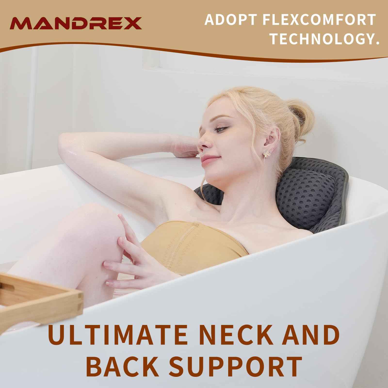 - Luxury Bath Experience: Enhance your bath experience with the Mandrex Bath Pillow, an ergonomic pillow that offers superior head, neck, back and shoulder support, ensuring ultimate comfort as you relax in your soak. It allows you to take a long bath without feeling tired