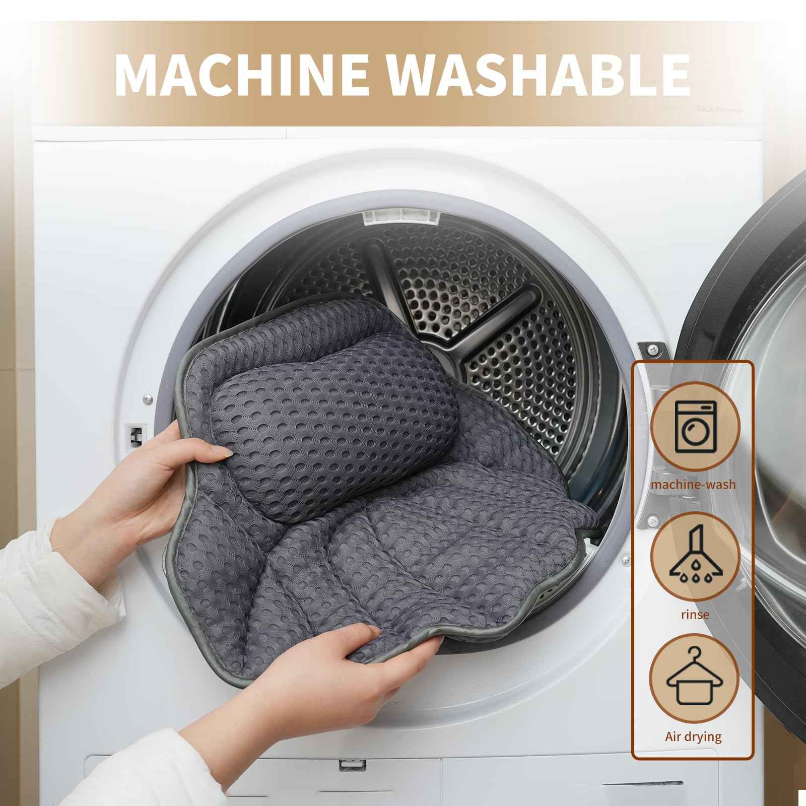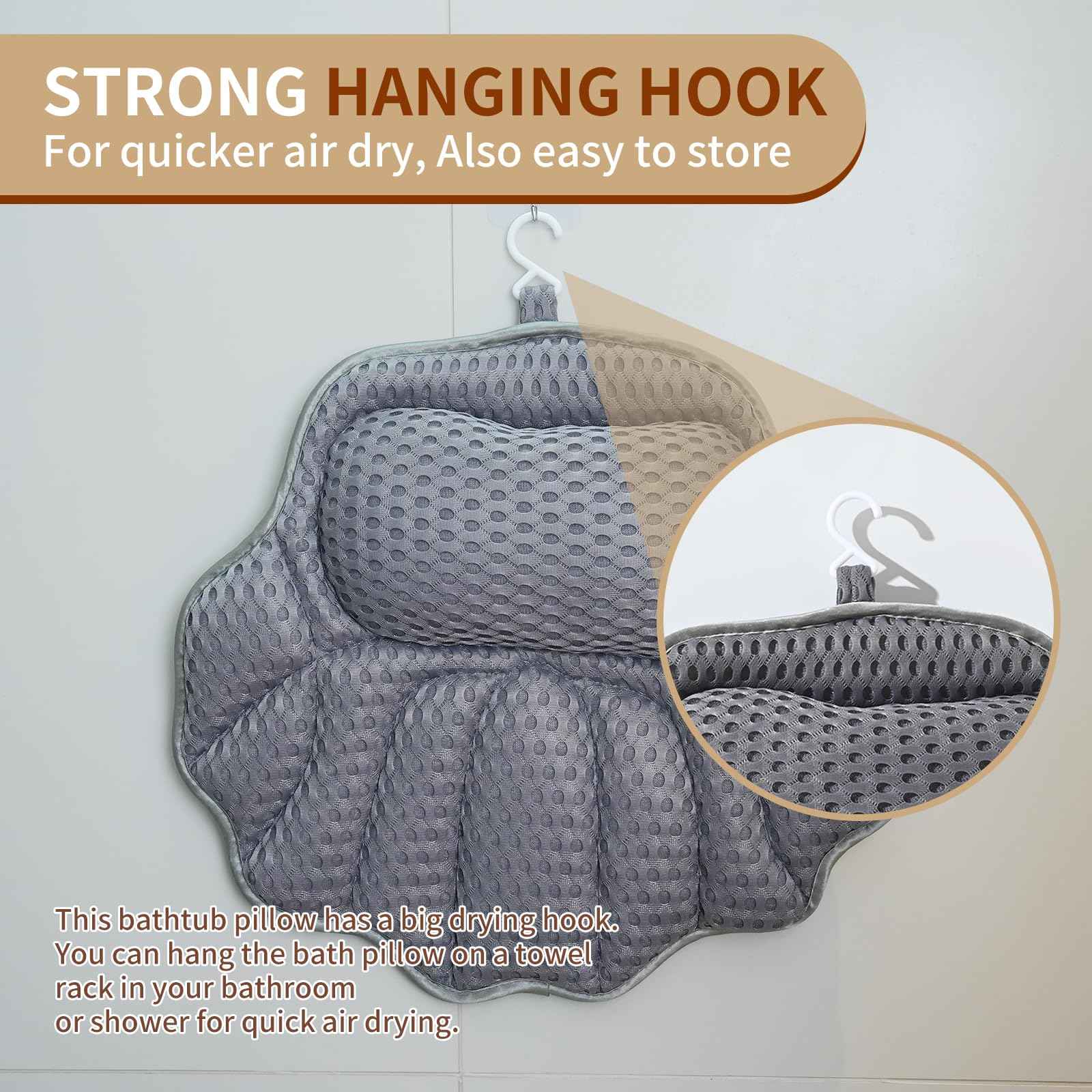 - Soft Mesh Fabric: Made of high-quality 4D mesh fabric with a thickened headrest for comfortable high elasticity.This pillow ensures breathability and the ability to dry quickly for a refreshing bath that also stays fresh after long periods of use.Equipped with 6 powerful suction cups, the pillow firmly attaches to the bathtub surface, preventing slippage and ensuring your safety.