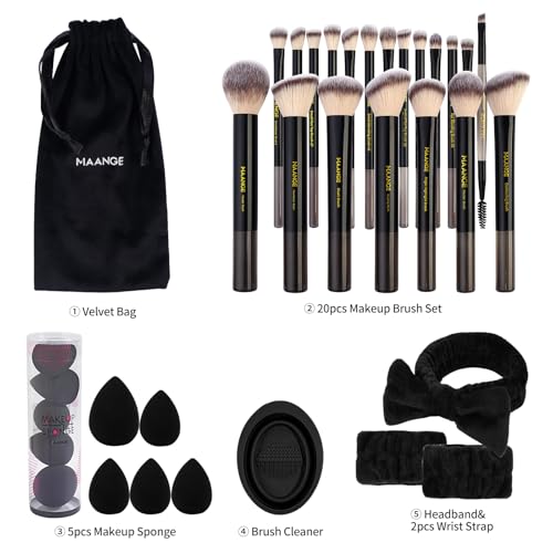 MAANGE Makeup Brushes 30 Pcs Makeup Kit, Multi-functional Makeup Tool Set with 20 Pcs Makeup Brush Foundation Brush Make up Brushes Set with Bag,Black