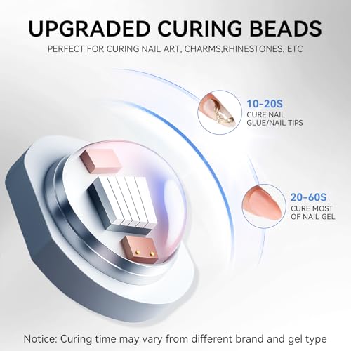 - Fast & Efficient Curing in Seconds: Equipped with powerful UV LED beads, this mini nail lamp cures nail tips, most gel polishes, builder gels, glue gels, and rhinestone gels in just 8?10 seconds, depending on layer thickness. Save time while achieving salon-quality nails.