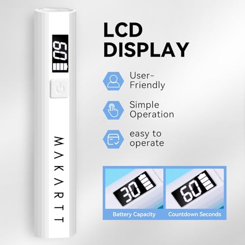 - Rechargeable & LCD Timer Display: The built-in 180mAh battery ensures cordless convenience with USB-C charging. Comes with a digital LCD screen and dual timer settings (30s/60s), letting you easily monitor curing time and battery life for efficient nail work.