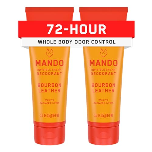 Mando Whole Body Deodorant For Men - Invisible Cream - 72 Hour Odor Control - Aluminum Free, Baking Soda Free, Skin Safe - 3 Ounce Tube (Pack of 2) - Bourbon Leather