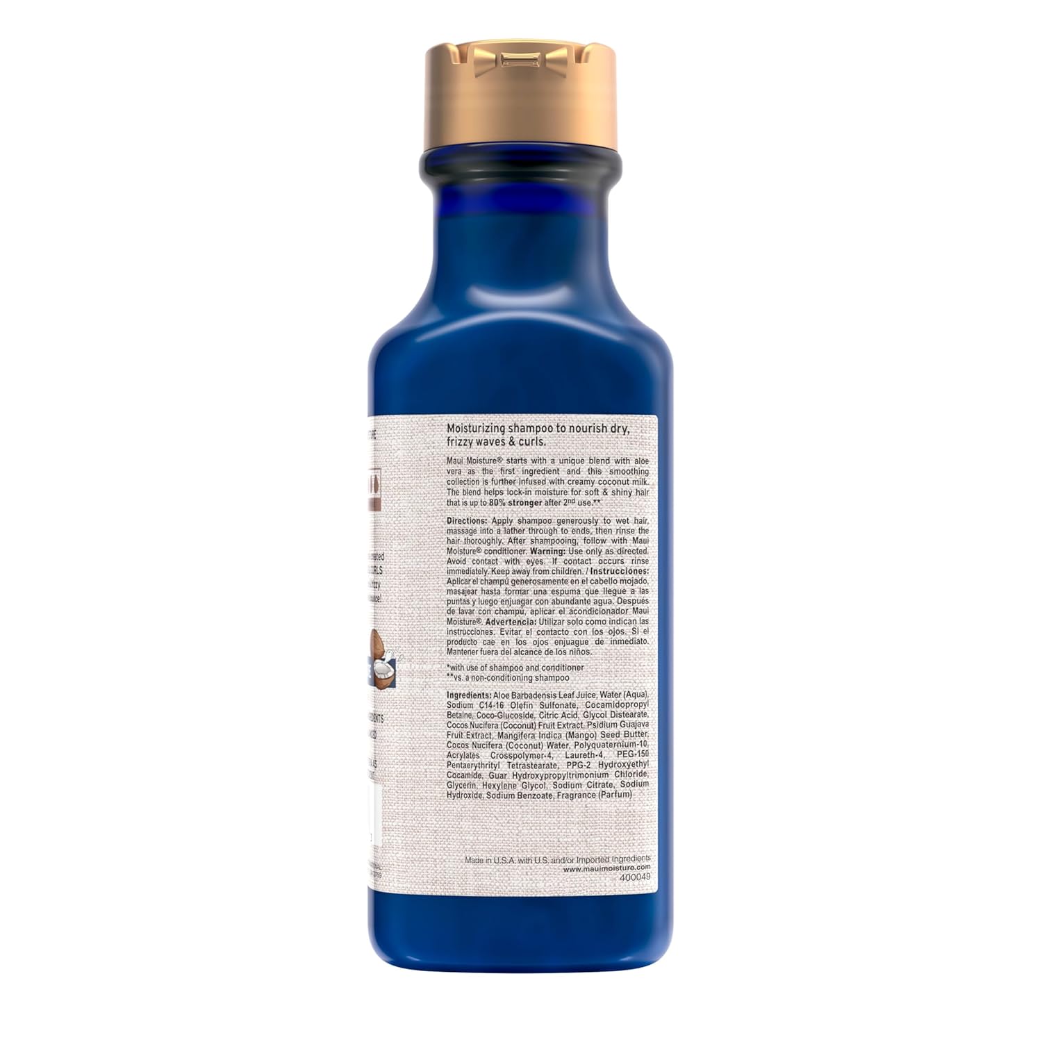 - MOISTURIZE & NOURISH LOCKS: This 13-fluid ounce bottle of Maui Moisture Nourish & Moisture + Coconut Milk Curl Shampoo helps hydrate and nourish curls for a healthy-looking glow and shine