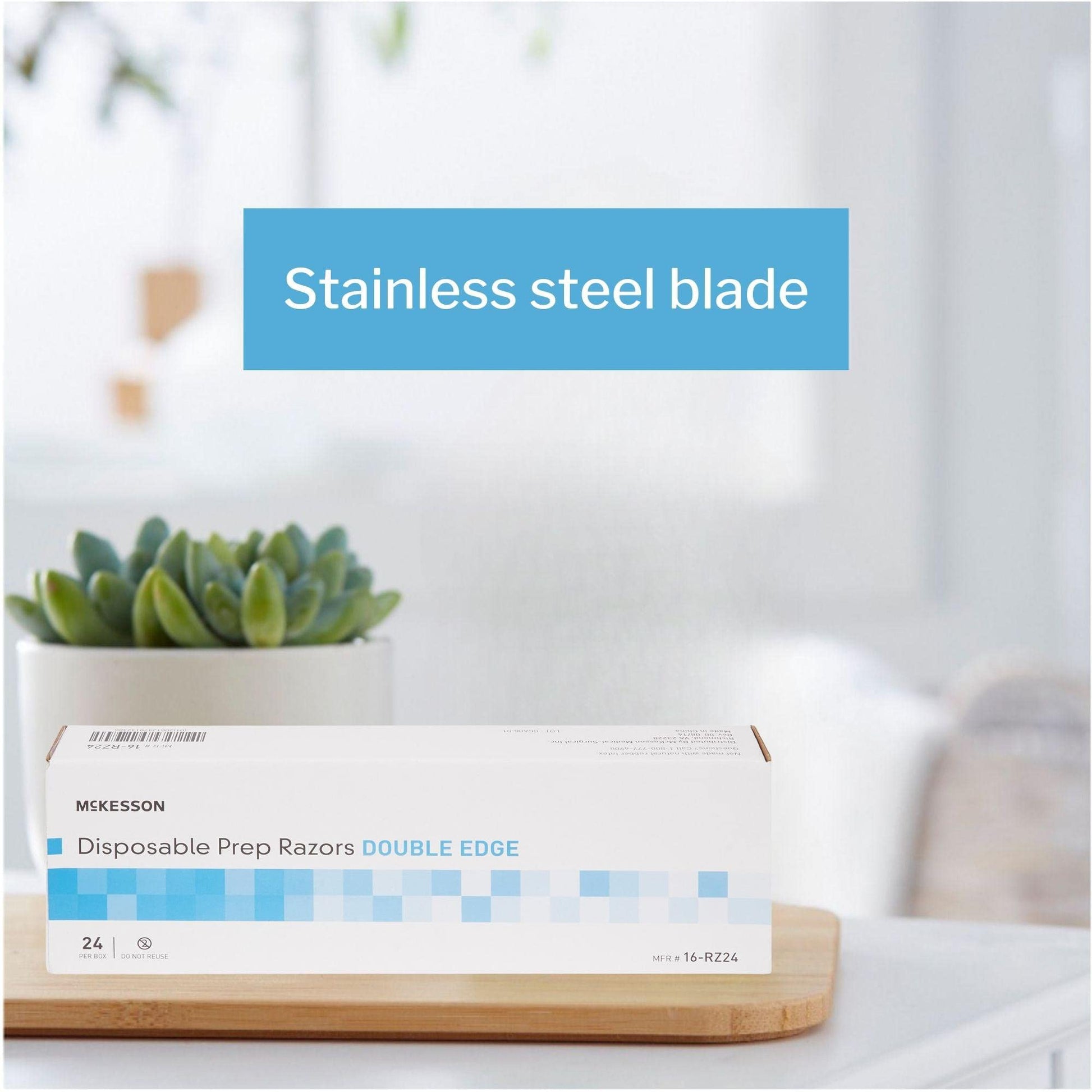 McKesson Disposable Razors [24 Count] Prep Shaving Razor, Single Blade Double Edge, Stainless Steel Blade, For Men and Women, Bulk, Blue