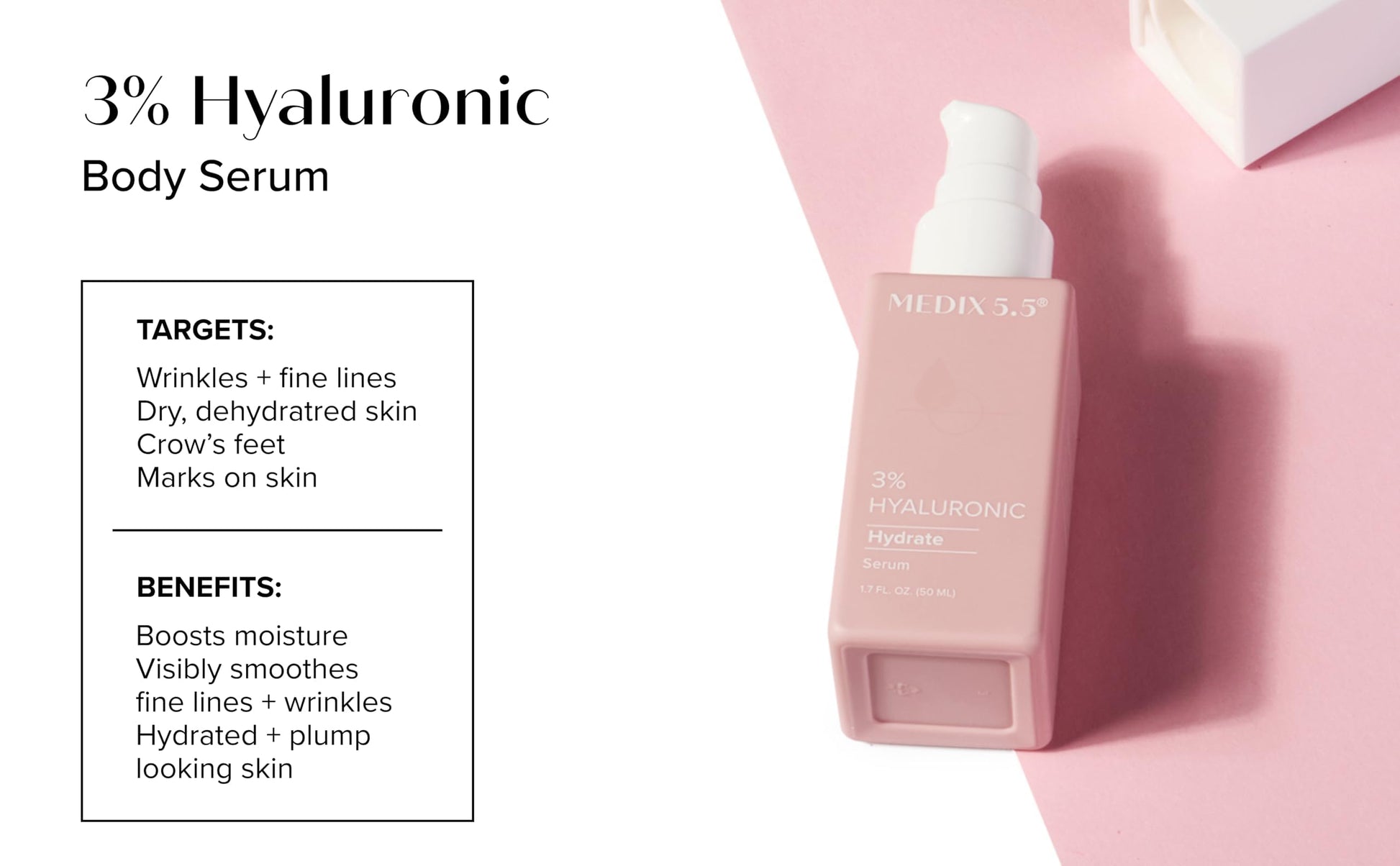 - BOOSTER – Supercharge your regular daily skin care routine by adding this highly concentrated 3% Hyaluronic Acid Hydration Booster Serum formulated to be combined with your favorite Medix 5.5 body moisturizer treatment cream, but can also be added to your favorite body moisturizer, face cream, body oil, after shave, or facial serum. Also combines well with Vitamin C, Retinol, Alpha Hydroxy Acids (AHAs), & Beta Hydroxy Acids (BHAs) products.