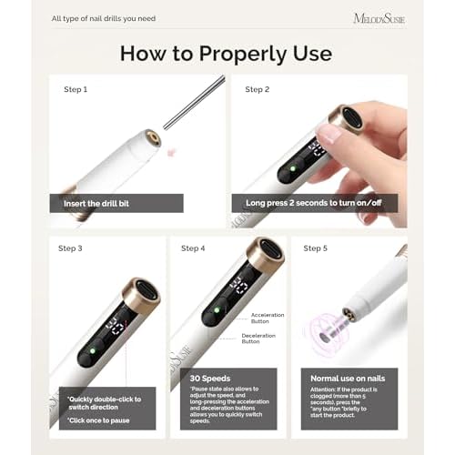 - Warm Tip: This nail drill machine is recommended for use with lighter nail bits, such as cuticle clean bits, flame bits, nit bits, safety bits, small cylinder bits, ball bits, micro ball bits, flat-end cylinder bits, and needle bits, etc. We Provide a Hassle-Free Warranty. Feel free to message us through our online customer service.