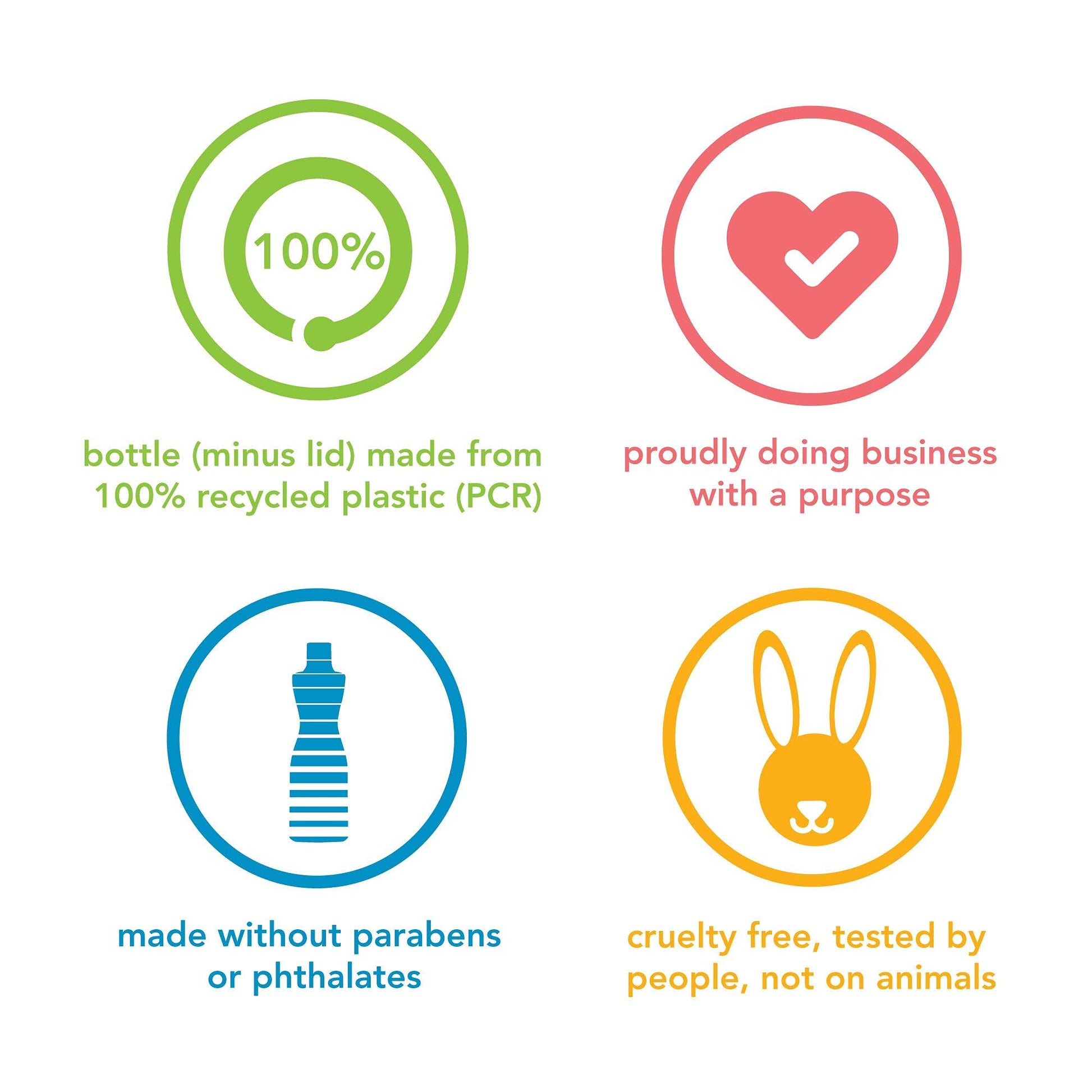 - Bottle (minus lid) made of 100% recycled plastic (PCR).