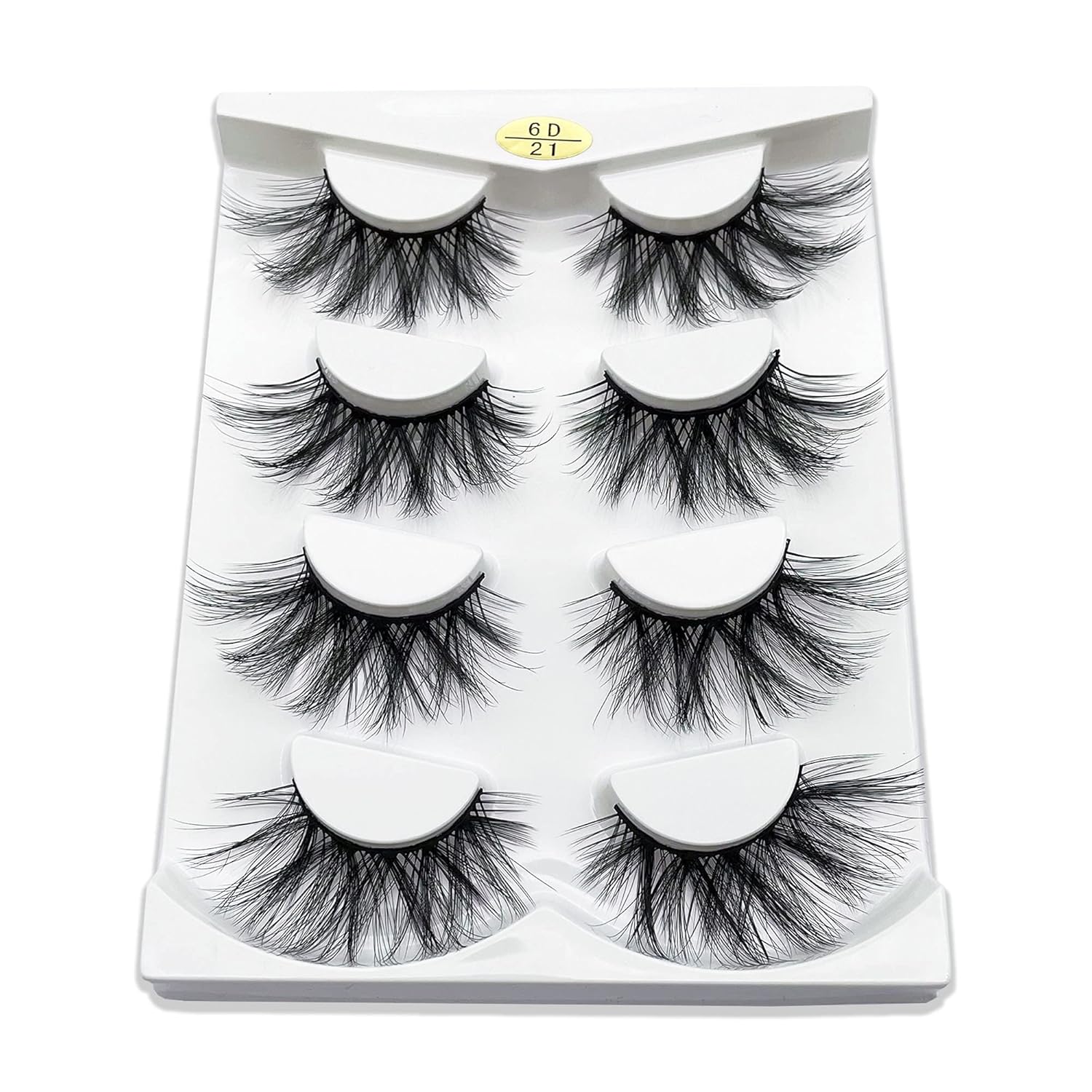MIKIWI 25mm Lashes, Dramatic 6D Faux Mink Lashes, Fluffy Volume Eyelashes, Thick Crossed Lashes, Long Faux 25mm Mink Lashes (6D4-05)