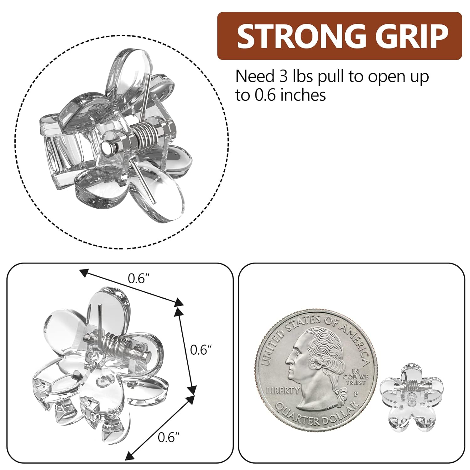 - Strong Grip Flower Hair Clip Small : Baby hair clip has strong spring and needs 3 lbs pull to open up to 0.6 inch. Small flower clips for hair can hold baby's hair in place no damage. Mini flower clips are optimal toddler hair clips for fine hair non slip