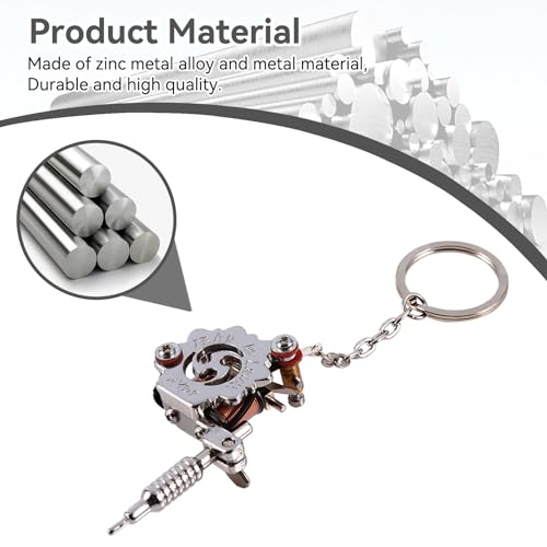 Mini Tattoo Machine Key Chains, Artists Keychain Portable Tattoo Gun Model Mini Keychain Pendant Necklace Tattoo Ornament for Tattoo Artists, 14.5x4cm/5.7x1.6 in