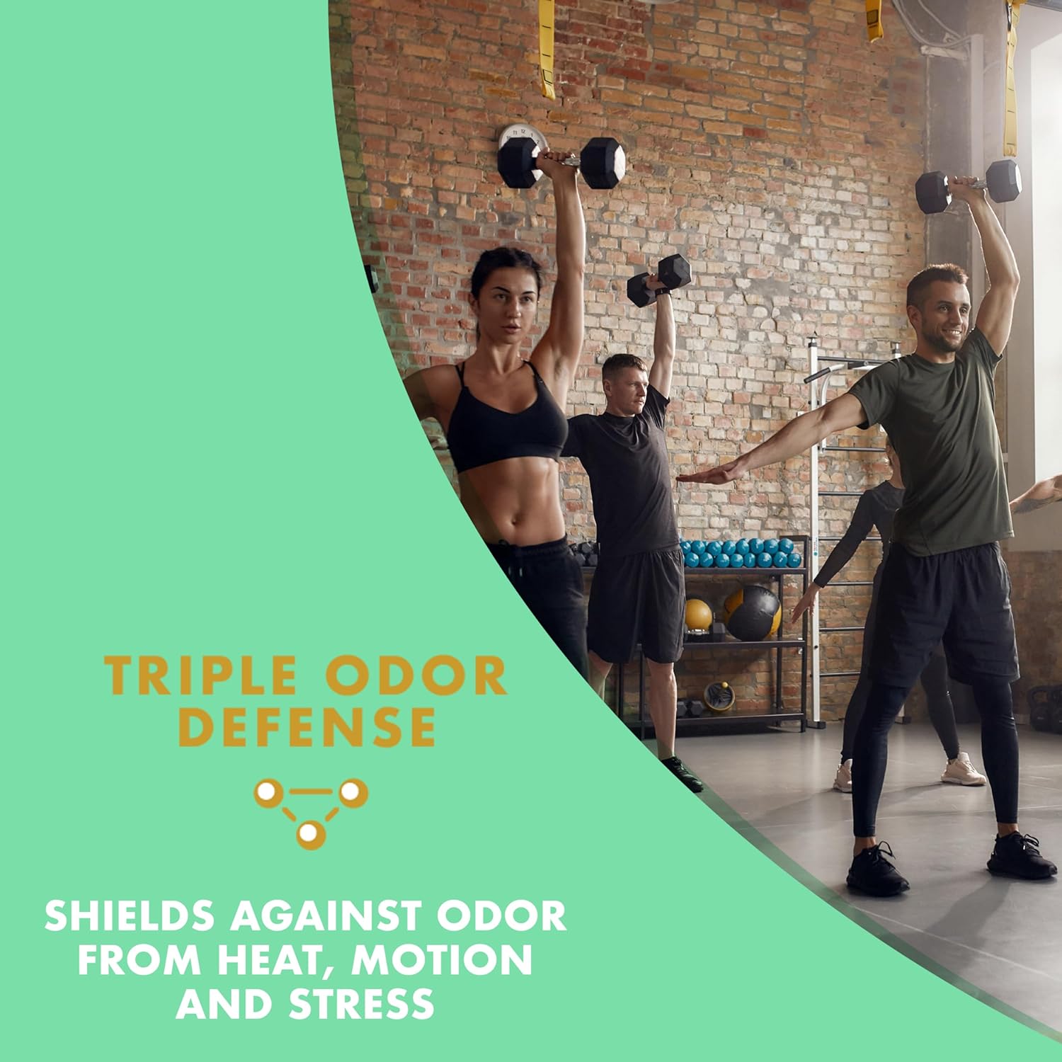 - TRIPLE ODOR PROTECTION: Shields against odor from heat, motion, and stress