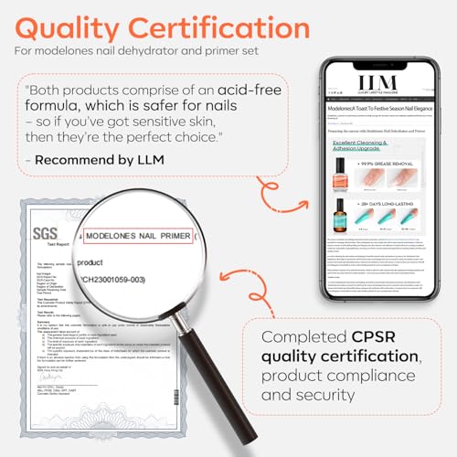 modelones 30 ml Nail Dehydrator and Primer, Acid Free Natural Prep Dehydrate & Bond Primer Kit, Hema-Free Acrylic Nail Supplies Top Coat