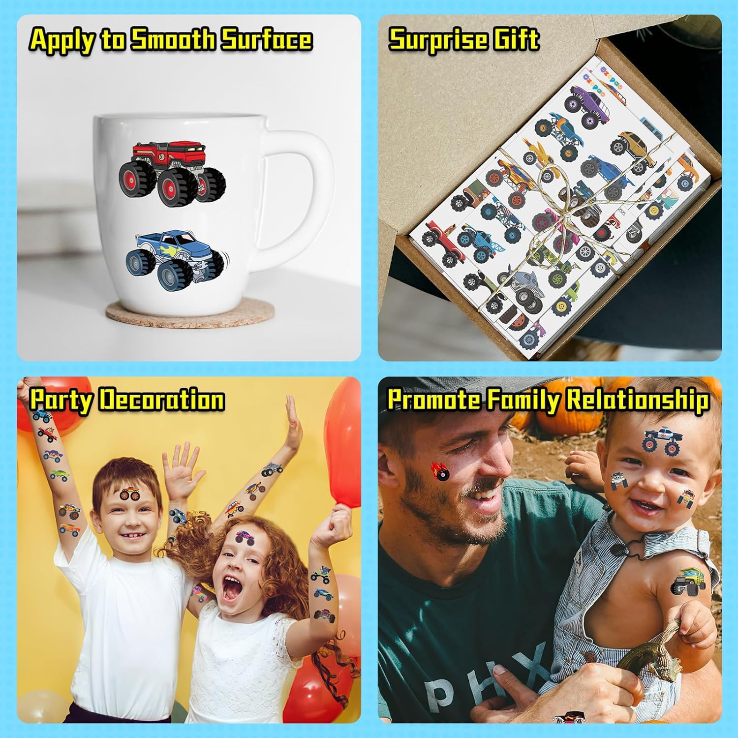 - 🛻 10 Sheets of Monster Truck Party Accessories: This set includes over 75 unique tattoo designs, featuring both cool and cute cartoon styles. Enhance any children’s party or event with these fun-filled tattoos.