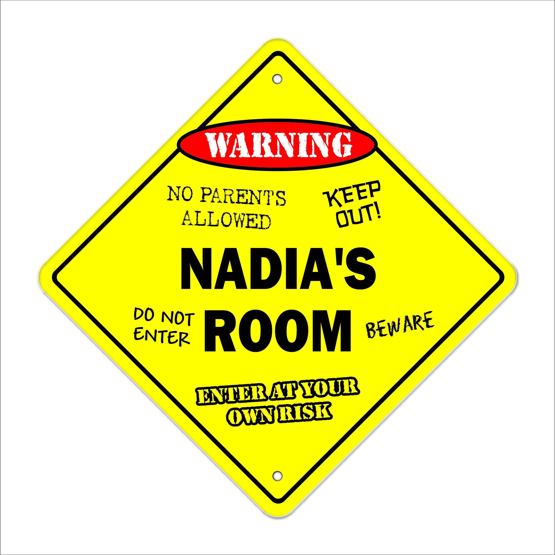 Nadia's Room Sign Crossing Zone Xing | Indoor/Outdoor | 12" Tall Kids Bedroom Decor Door Children's Name boy Girl