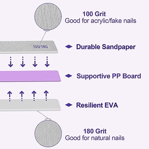 - 100/180 Grit Dual-Sided Nail Files: Each package contains 24 double-sided nail files, with one side featuring a coarse 100-grit texture, ideal for acrylic and thick nails, while the other side boasts a fine 180-grit texture, perfect for buffing away nail surface imperfections or refining natural nails.