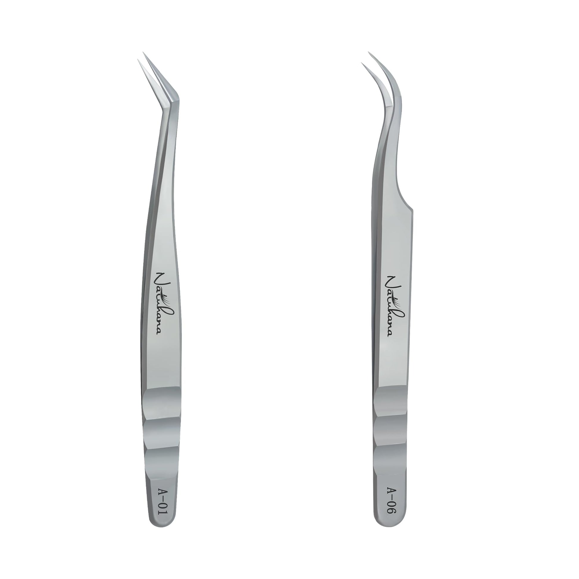 Natuhana High Precision Lash Tweezers for Individual and Volume Eyelash Extensions Premium Stainless Steel Curved Fiber Tip Professional Isolation Tweezer
