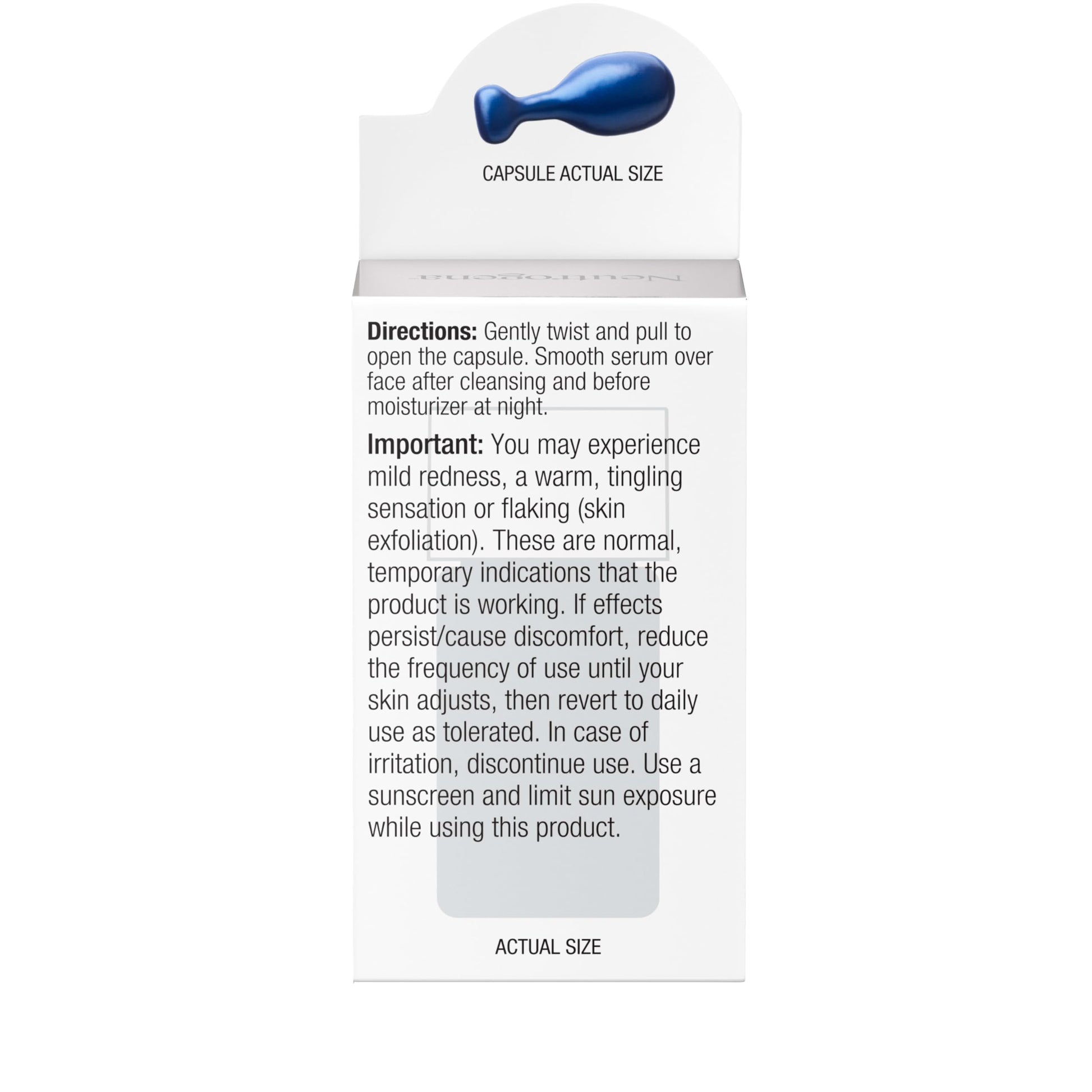 Details: Target fine lines, dullness, wrinkles, and skin elasticity with Neutrogena Rapid Wrinkle Repair Retinol Face Serum Capsules. These facial serum capsules are clinically proven to improve the look of wrinkles in 4 weeks. Giving you instantly softer smoother skin, and more supple, radiant, and revitalized-looking skin in just one week. Each anti-aging serum capsule contains a fresh dose of retinol that is suitable for all skin tones and types. Pure retinol, a dermatologist-proven form of vitamin A that fights fine lines, wrinkles, and dark spots. The water biodegradable, seaweed-based capsules provide easy to use, mess-free application at home or on the go, and the lightweight and non-greasy serum is hypoallergenic and free from fragrance, alcohol, mineral oil, parabens, and silicone. To use, gently twist and pull to open the retinol capsule and smooth over freshly cleansed skin. Enhance your anti-aging routine by following the serum with Rapid Wrinkle Repair Retinol Regenerating Cream.