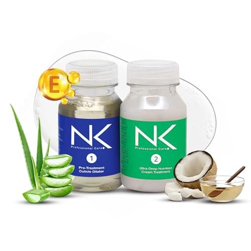 NK Hair Straightening Treatment with Keratin - 2-Step Nourishing, Reconstructing and Smoothing Formula for All Hair Types, 60ml (4oz)