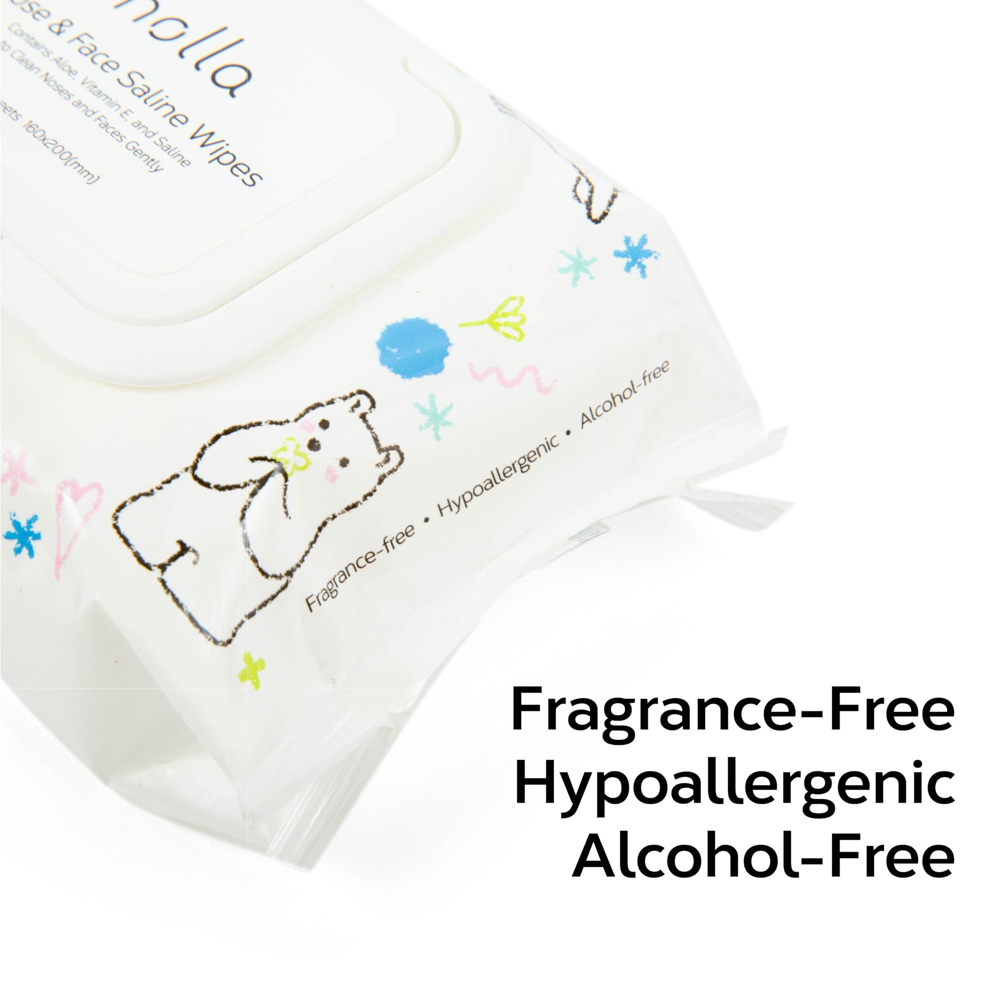 Nolla Nose and Face Wipes for Babies & Kids with Saline, Vitamin E, & Aloe | Unscented | Compostable, 180 Count (6 Packs of 30)