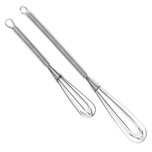 Details: When you need a quick whip or stir of salad dressing or dipping sauces, these are the whisks for you, This item comes as a set of 2. Made of chrome plated wire.