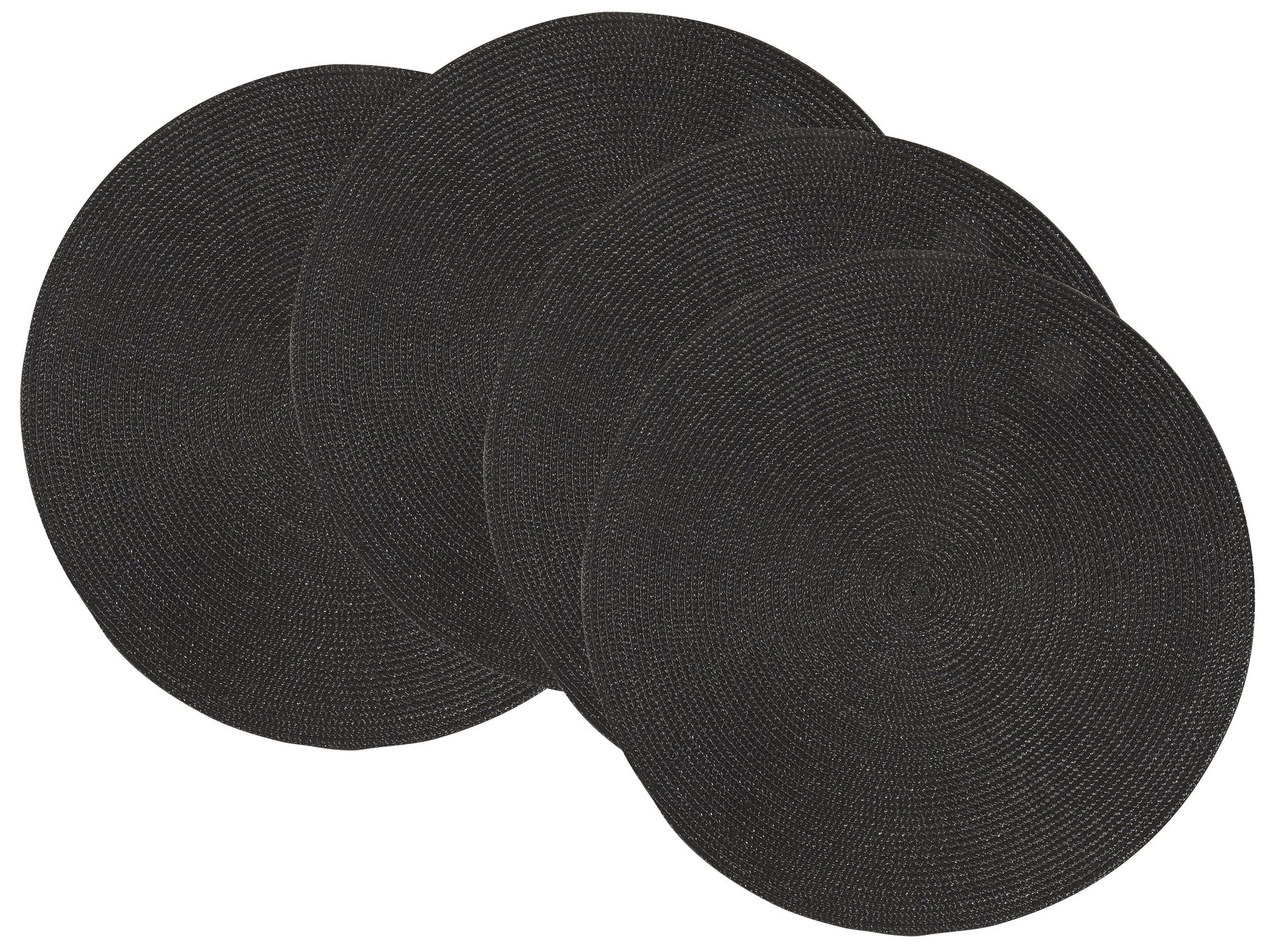 - Round placemats in bold shades ideal for adding pops of color to indoor and outdoor dining tables. Black - set of 4. Each measures 15 inches in diameter