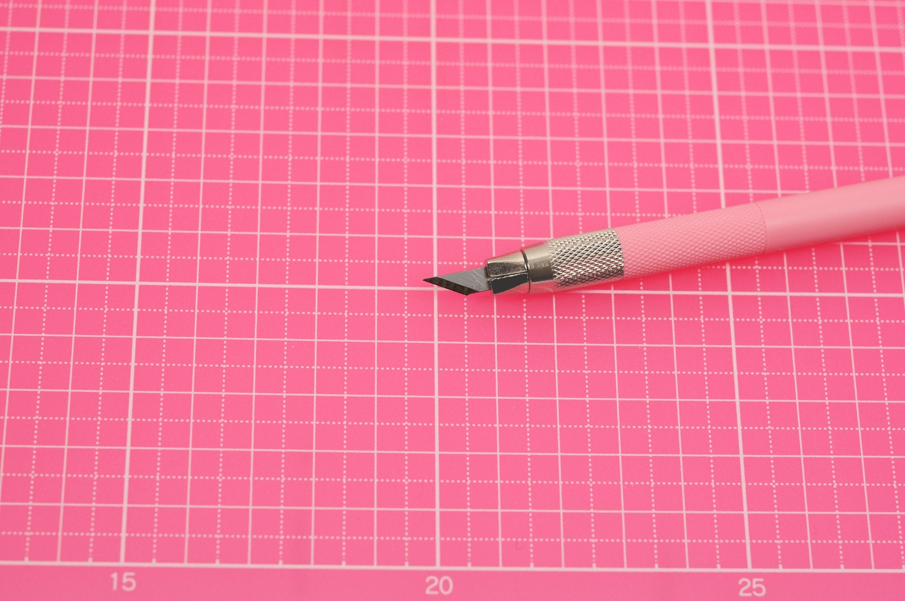 Details: NT's Precision knife, with noncorrosive high-quality zinc chuck, durable resin holder in pastel pink and nonslip nickel-plated brass grip, is for the most intricate of cutting jobs. Designed for accuracy and stability, this professional knife is great for crafts, model making and other artisanal projects. This pen-style art knife includes a protective blade cap, (5) 30 degree blades and (5) 45 degree blades. These professional blades are made of high quality carbon tool steel and produced through multiple stages of precise process to obtain the ultimate sharpness and optimum edge-retention. Good for hobby projects, crafts, model making and other artisanal projects. Made in Japan.