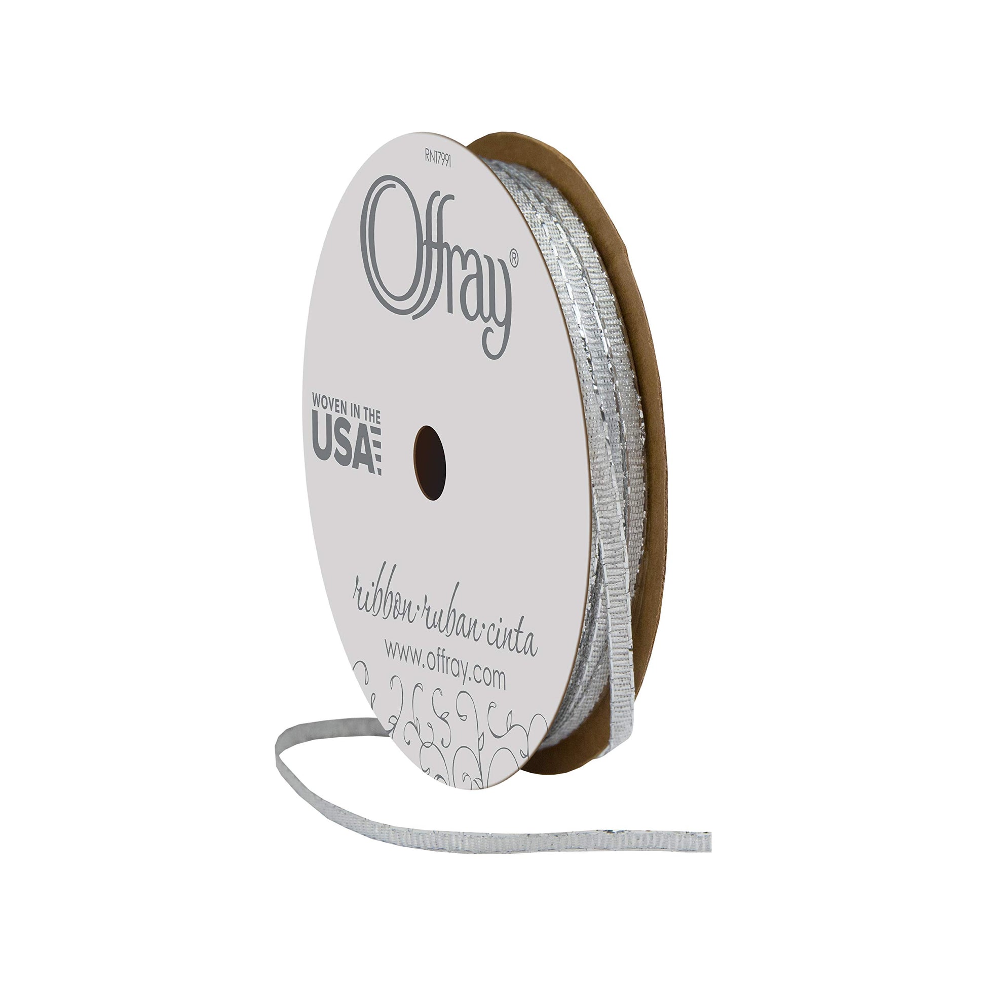 Offray 1/8" Wide Galena Craft Ribbon, 5 Yards, Silver