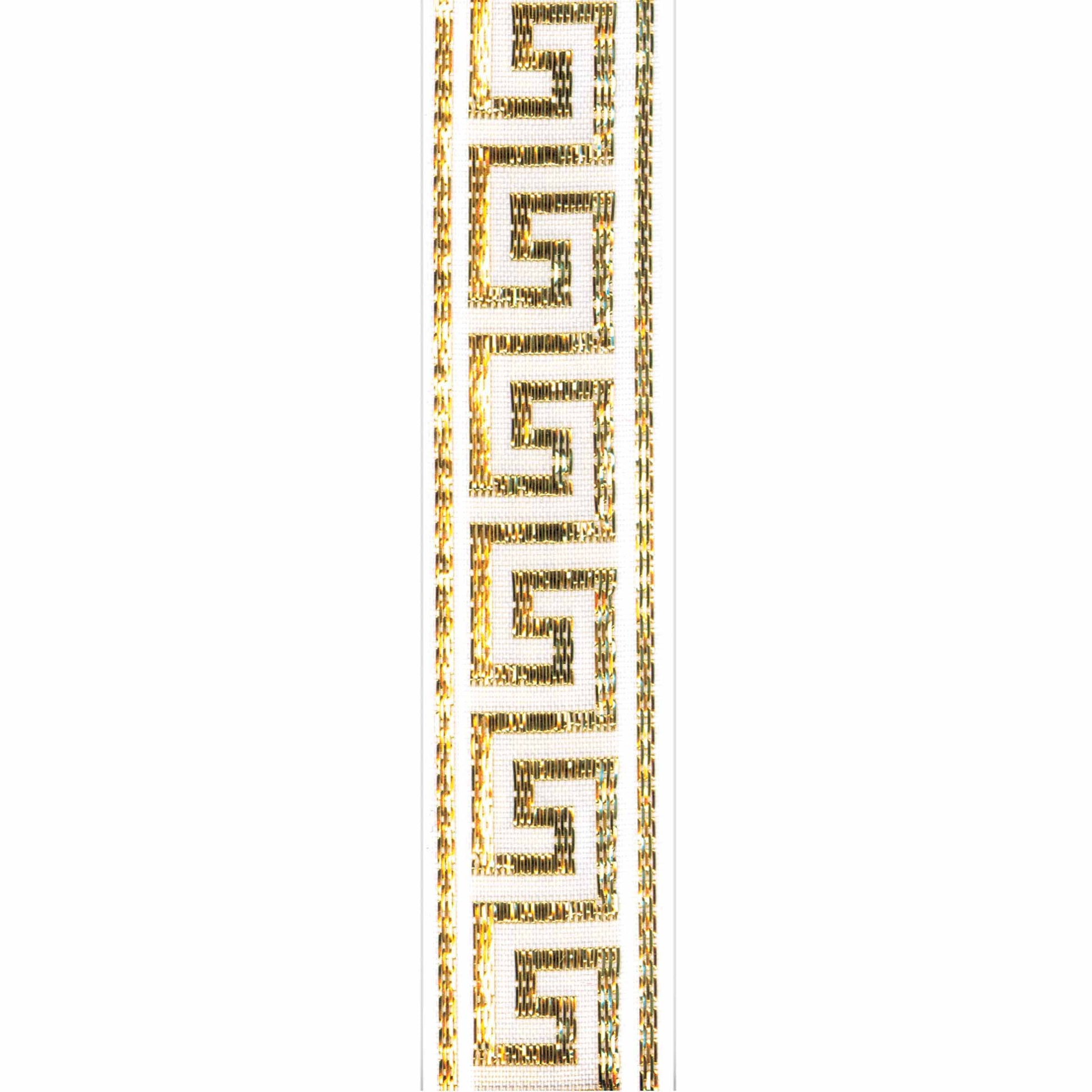 Offray 7/8" Wide Ribbon for Crafts and Decorations, 9-Foot Spool, White Greek Key Pattern