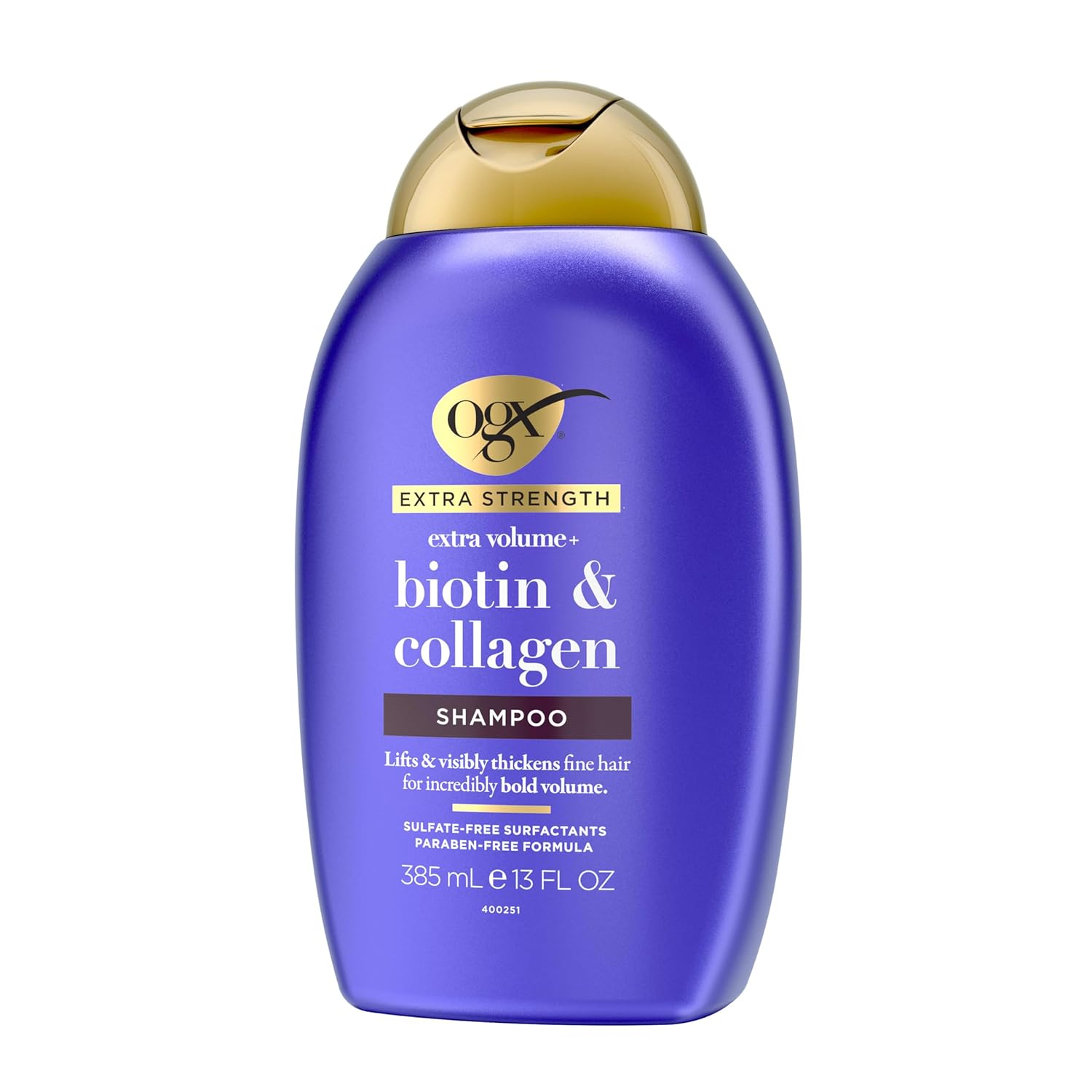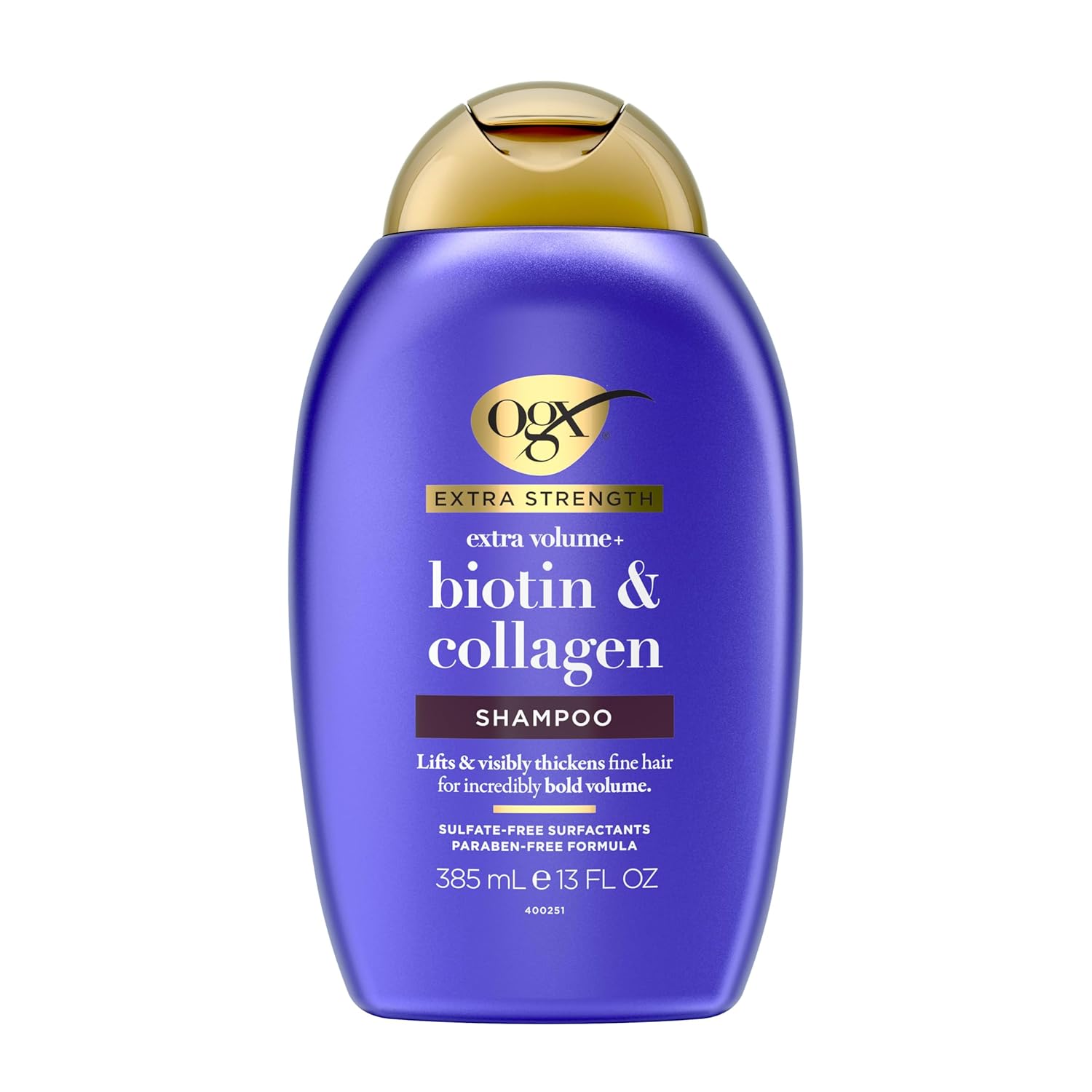 - EXTRA STRENGTH FOR EXTRA VOLUME OGX Extra Strength Biotin & Collagen Shampoo is a volume-creating powerhouse with an extra helping of vitamins and proteins to pump up fine strands