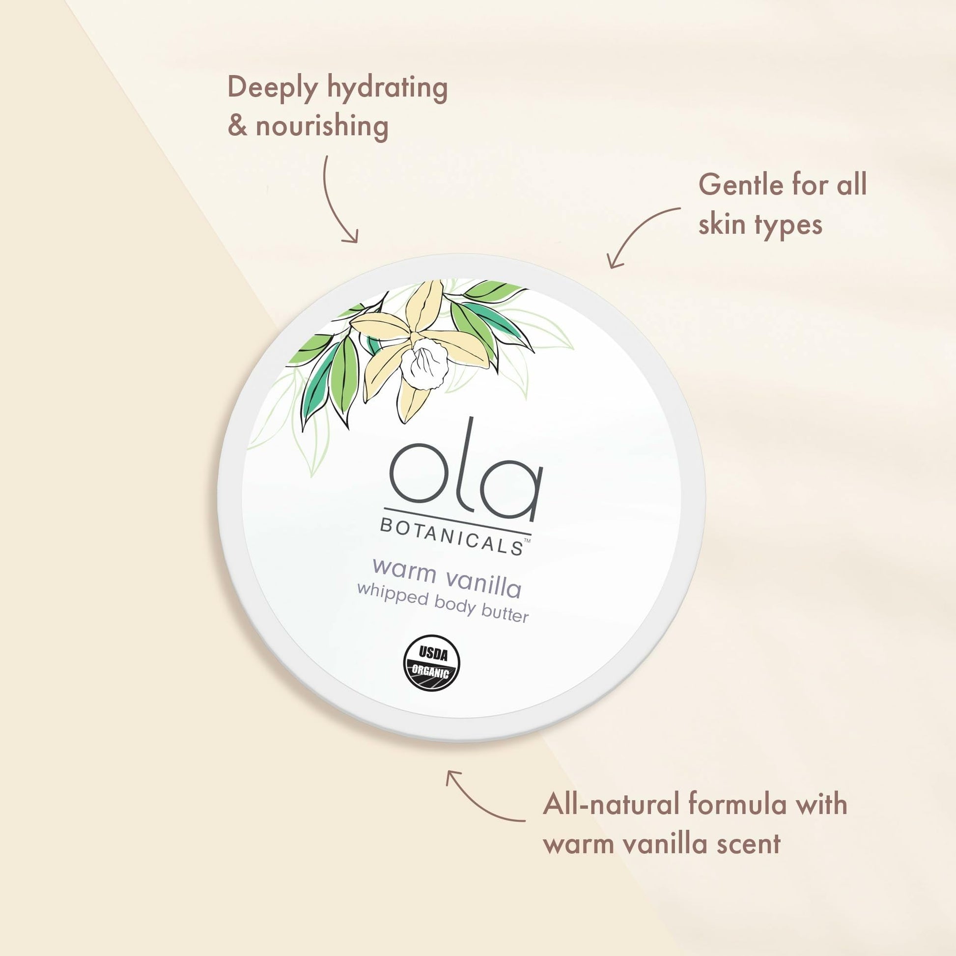 Ola Botanicals Whipped Body Butter (4oz) Vanilla, USDA Certified Organic, Cruelty Free, Gluten Free, Soy Free, Dr. Mercola