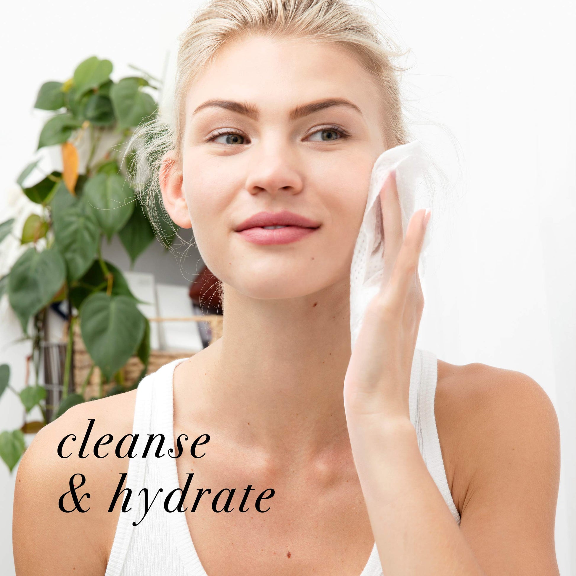 - Face wipe formula removes makeup and drenches skin in hydration.