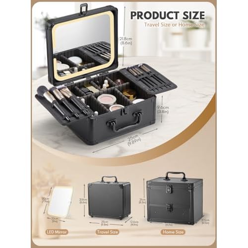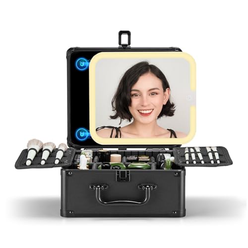 OMIRO Makeup Case, Makeup Bag with Light Up Mirror Set, Makeup Organizer Bag with Magnet Makeup Mirror for Women and Girls